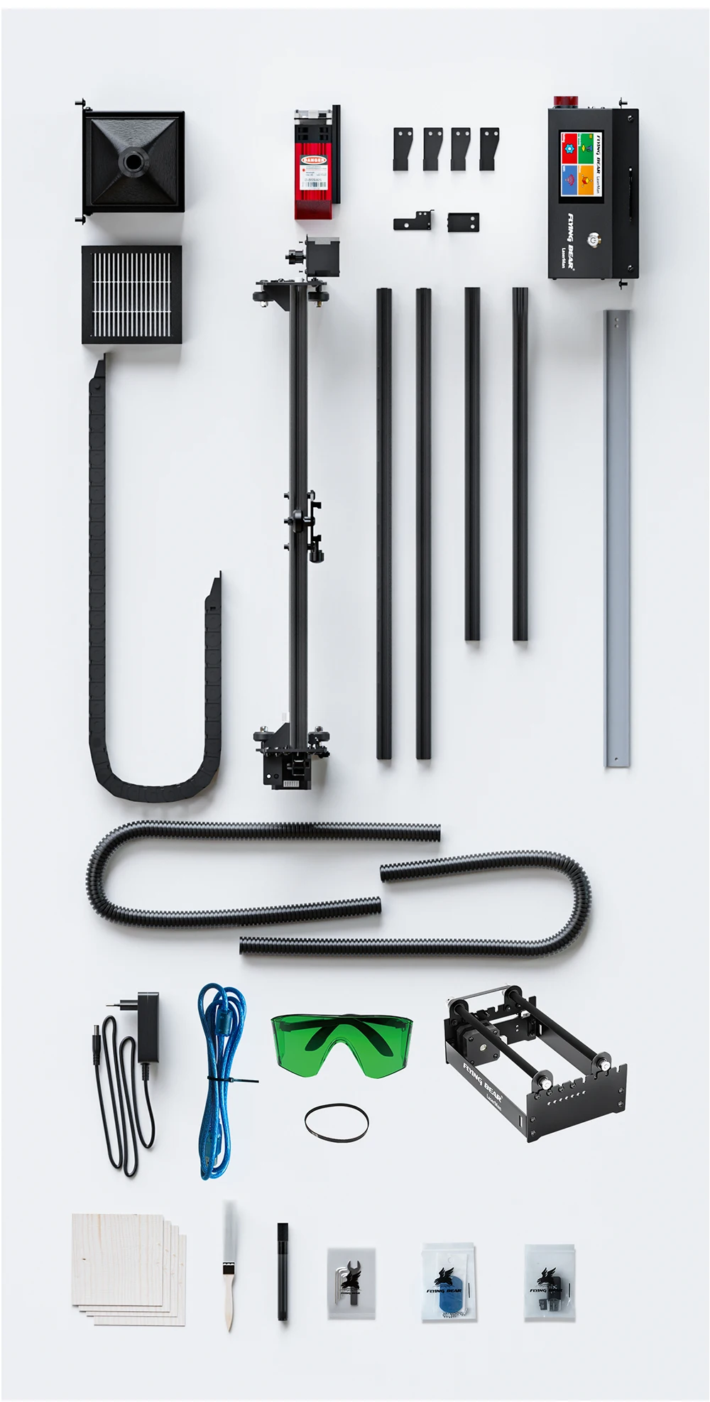 Лазерный гравировальный станок FLYING BEAR LaserMan с вспомогательным фильтром Airmate для гравера с Wi-Fi-соединением