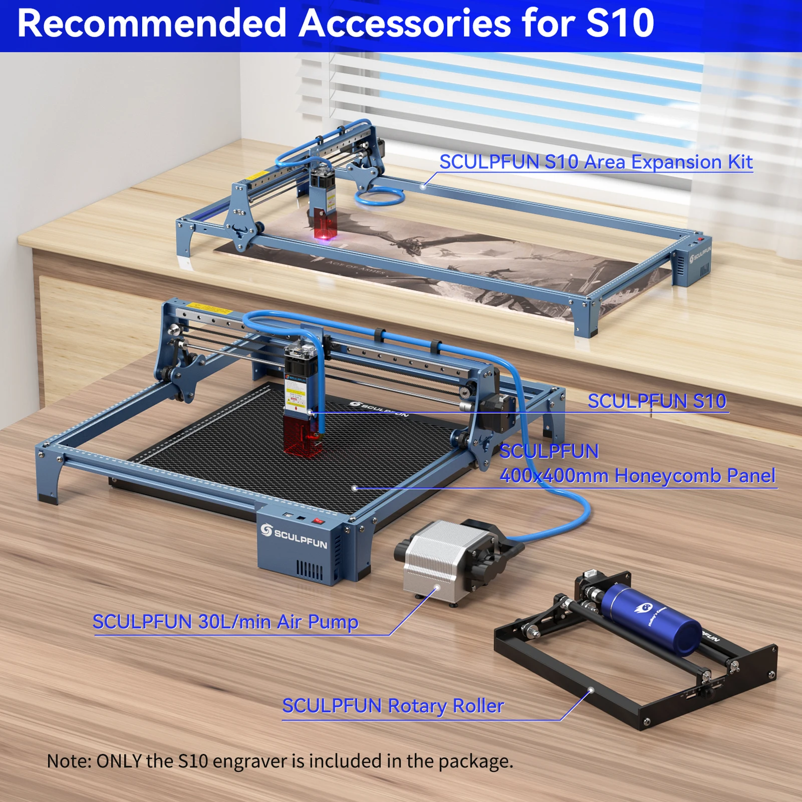 Технология формирования лазерного луча 10 Вт:Выходная мощность лазера S10 увеличена до 10 Вт, что вдвое больше, чем у S9. Но S10 получает тот же ультратонкий лазерный луч с фокусом 0,08 мм, что и S9, что означает, что S10 имеет более высокую плотность энергии, более сильное проникновение резания и возможности гравировки.