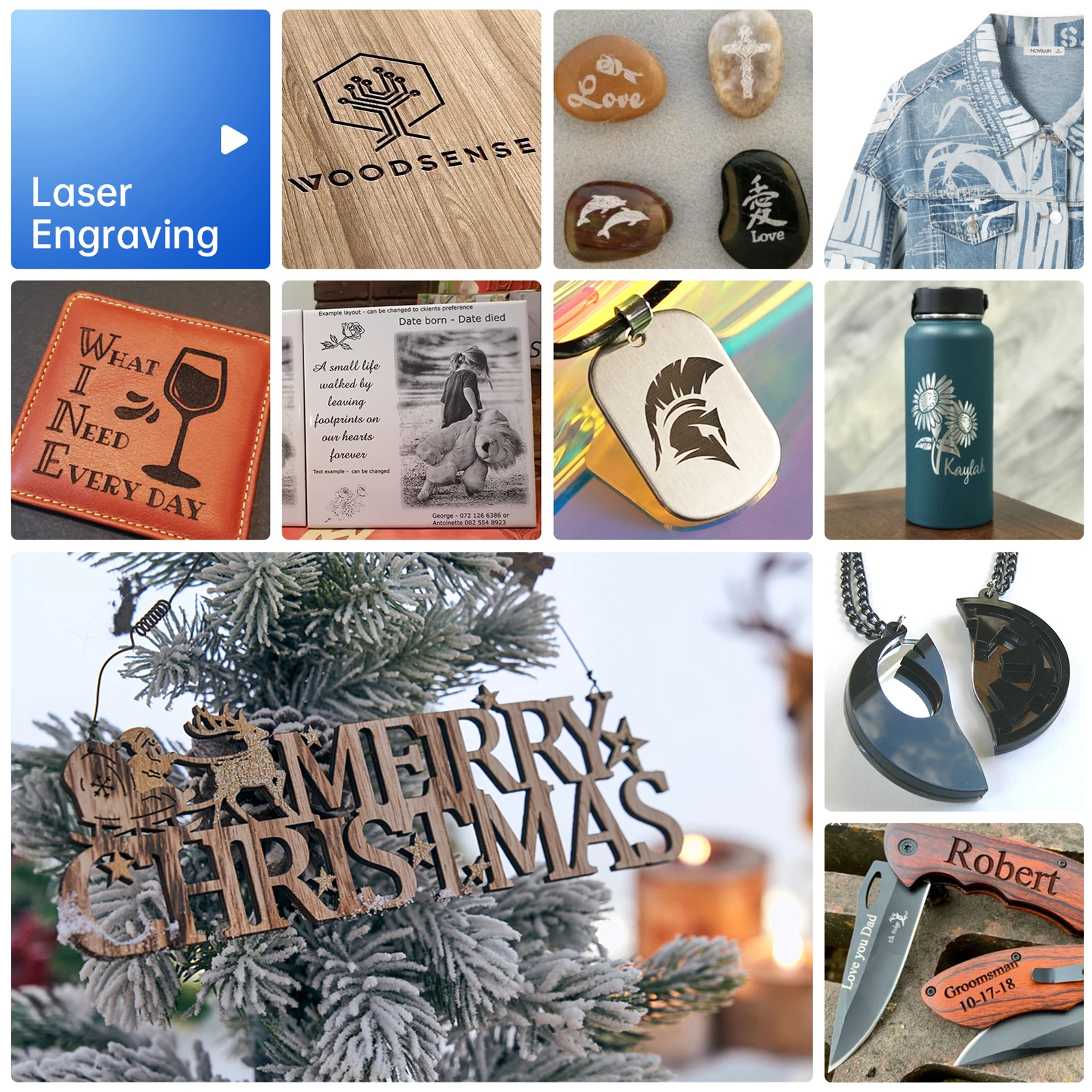 Материал гравировки: все виды дерева (включая орех, вишню и другую древесину высокой плотности), МДФ, бамбук, картон, пластик, кожа, печатная плата, глинозем, нержавеющая сталь 304, керамика, темный камень