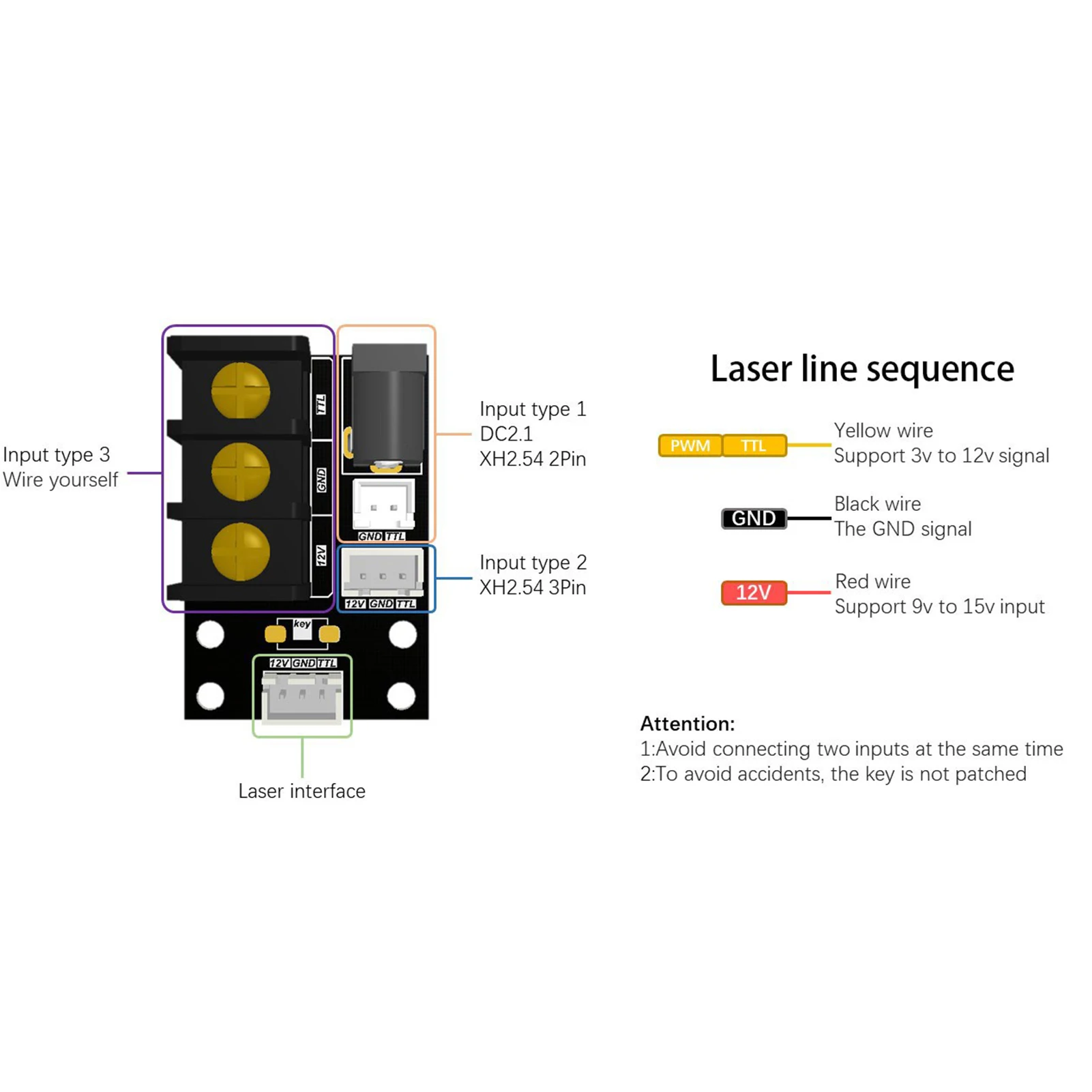 Он имеет фиксированное фокусное расстояние (лучшее Фокусное расстояние: Держите пластиковую нижнюю кромку лазерной головки на расстоянии 8 мм от гравировального объекта). Изготовлен из высококачественного алюминиевого сплава с большой прочностью.