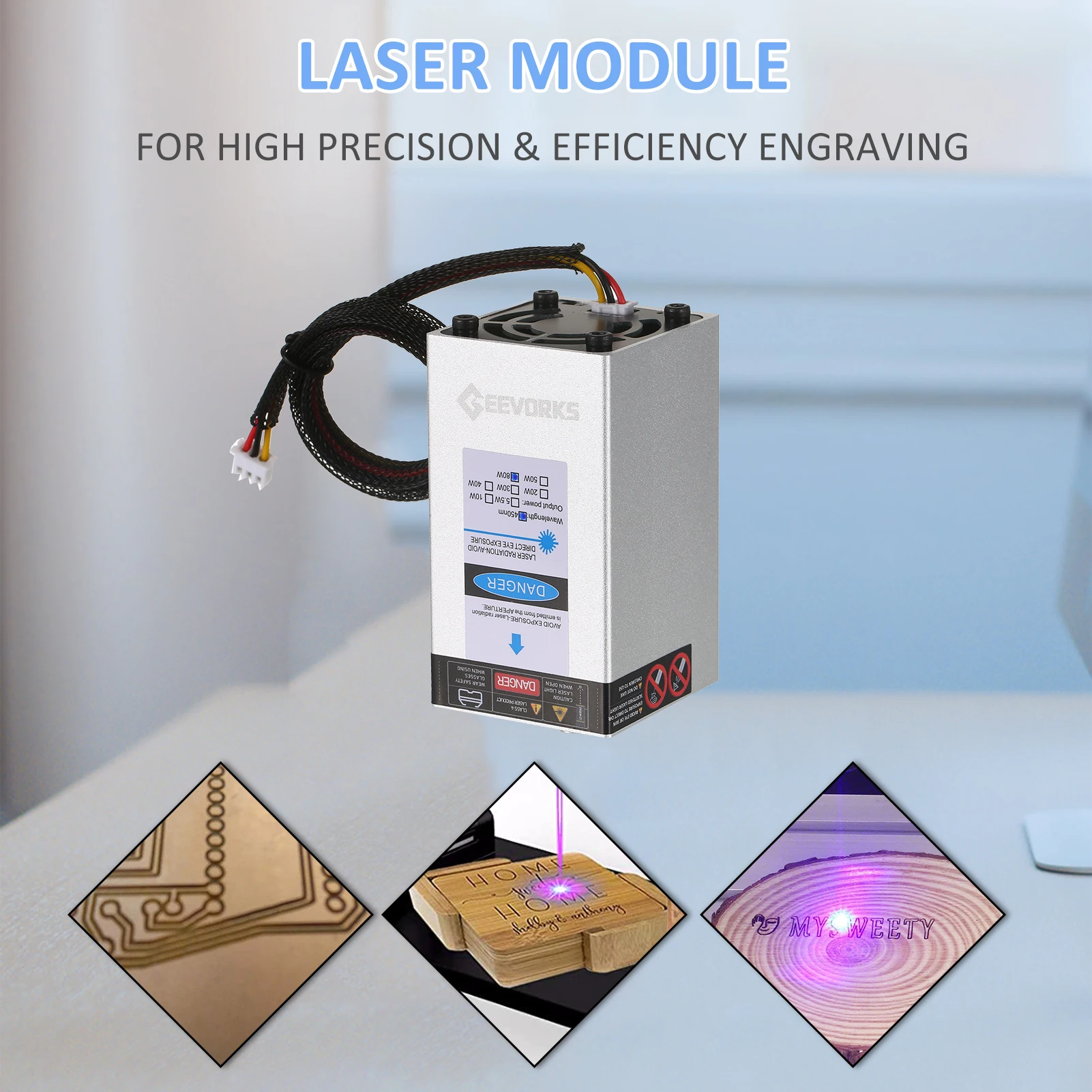 Профессиональный лазерный модуль, простой в установке, с меньшими потерями, обеспечивает длину волны 450 нм для эффективной и точной гравировки и резки пластика, дерева, бумаги и т. Д., Подходит для широкого спектра гравировальных станков.