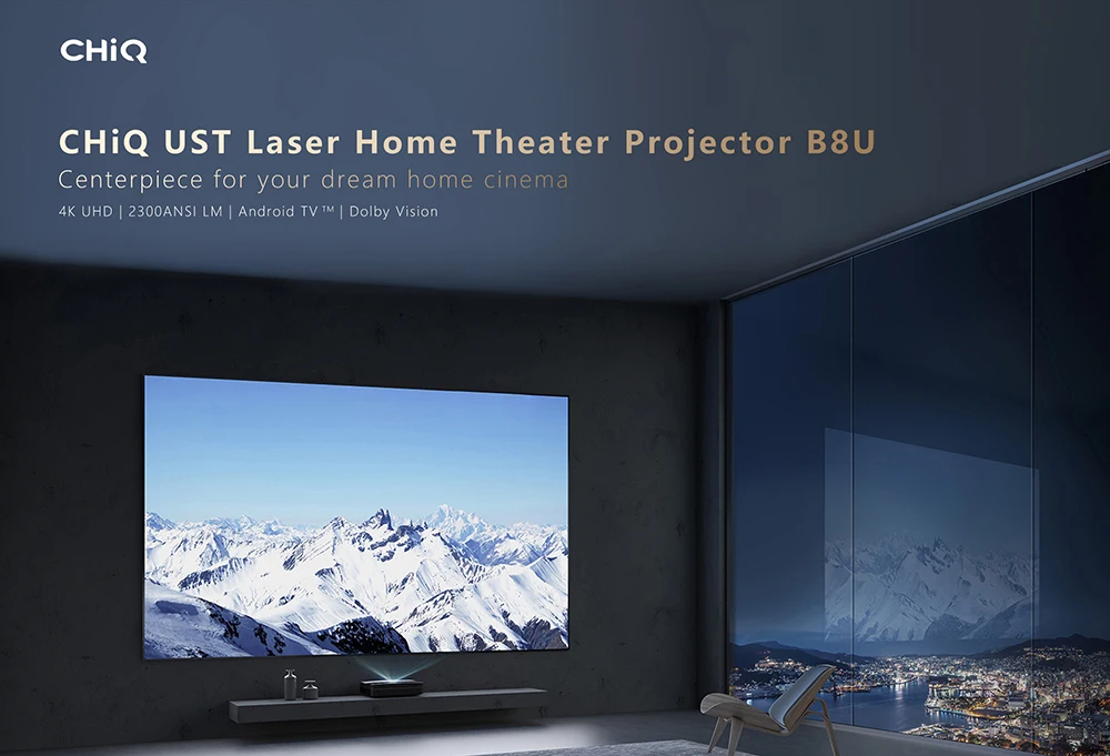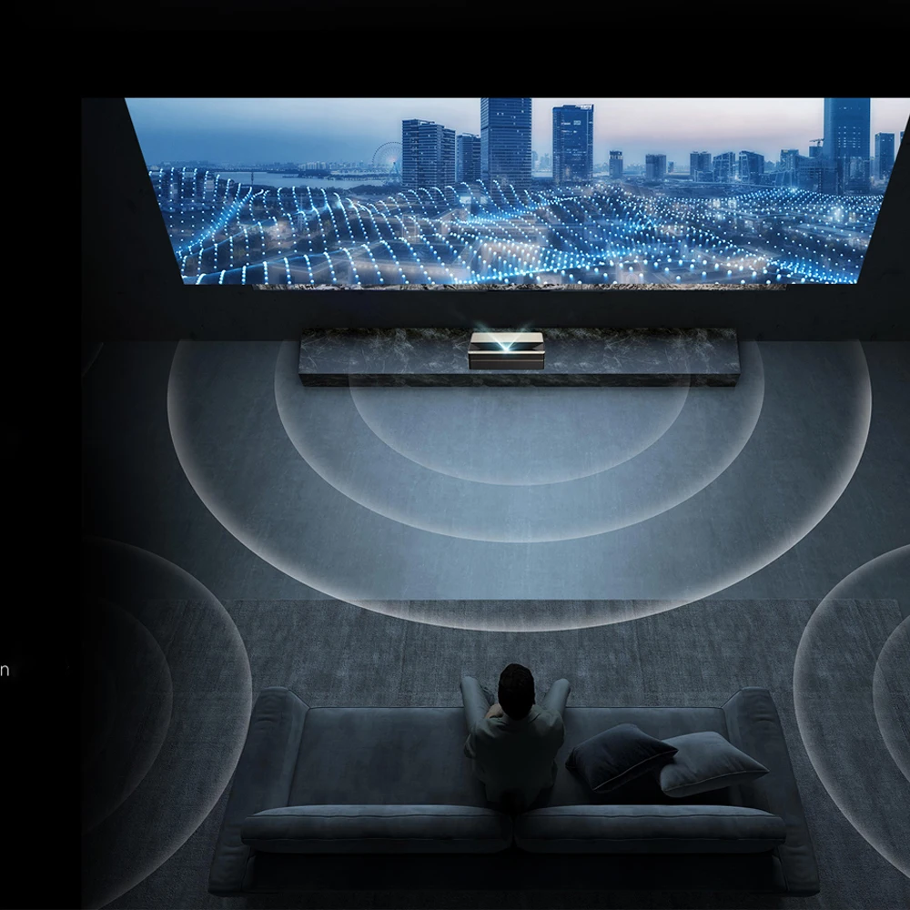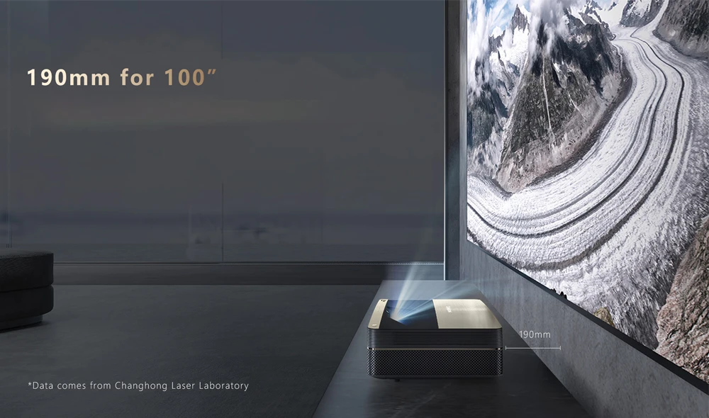 С сверхкоротким коэффициентом броска 0,21: 1, гигантская проекция 100. Требуется только расстояние 190 мм между краем проектора и экраном.