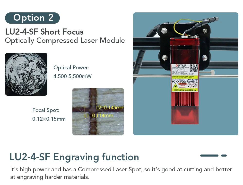 ● LU2-2 Лунная мощность 1-1,6 Вт, электрическая мощность 7 Вт. Хорошо подходит для гравировки изображений.