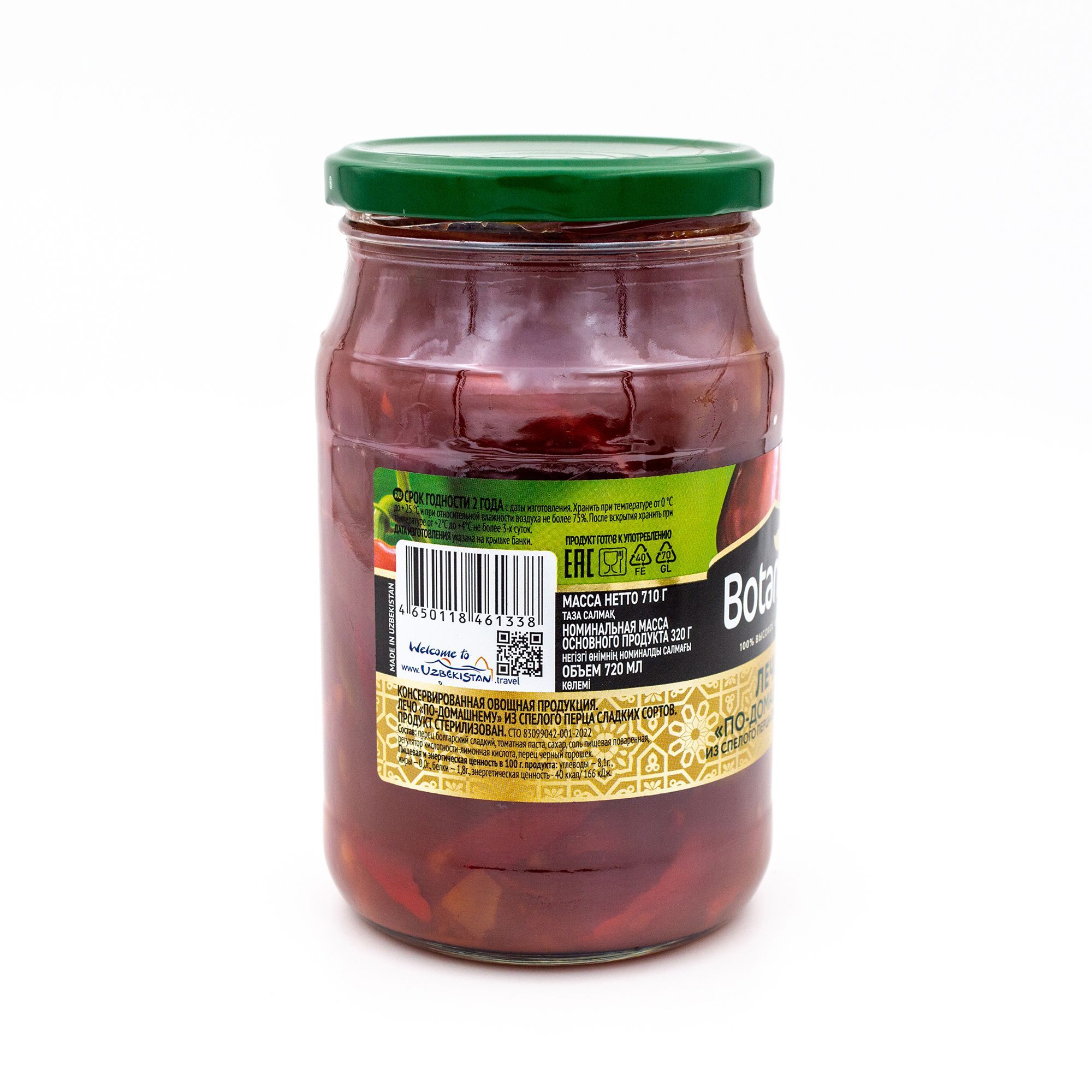 Описание: Лечо Botanica - это консервированный продукт, который создан по-домашнему и сделан из свежих овощей. Он имеет яркий вкус и аромат благодаря составу овощей, которые в него входят. Главным ингредиентом является лечо - традиционное узбекское блюдо из помидоров, болгарского перца, лука и специй. Лечо Botanica производится в Узбекистане и отличается высоким качеством и природными ингредиентами. Никаких консервантов, искусственных ароматизаторов и красителей в нем нет. Благодаря щепотке тимьяна и небольшому количеству чеснока, лечо Botanica обладает свежим вкусом и незабываемым ароматом. Консистенция красиво тянется и не жирная. Ботаника - это линейка высококачественных продуктов питания, которая отличается своими постоянным качеством и удобством использования. Лечо Botanica - это один из способов сделать вашу повседневную жизнь вкусной и полезной. Лечо Botanica отлично сочетается с многими блюдами: супами, пастой, рисом или просто на хлебе. Попробуйте его и вы никогда не захотите возвращаться к обычным консервам.
