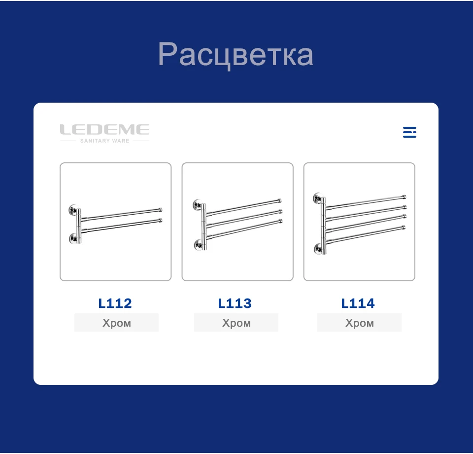 LEDEME Полотенцедержатель поворотный, двойной,тройной,четверной, настенный, L112,L113,L114 (хром)