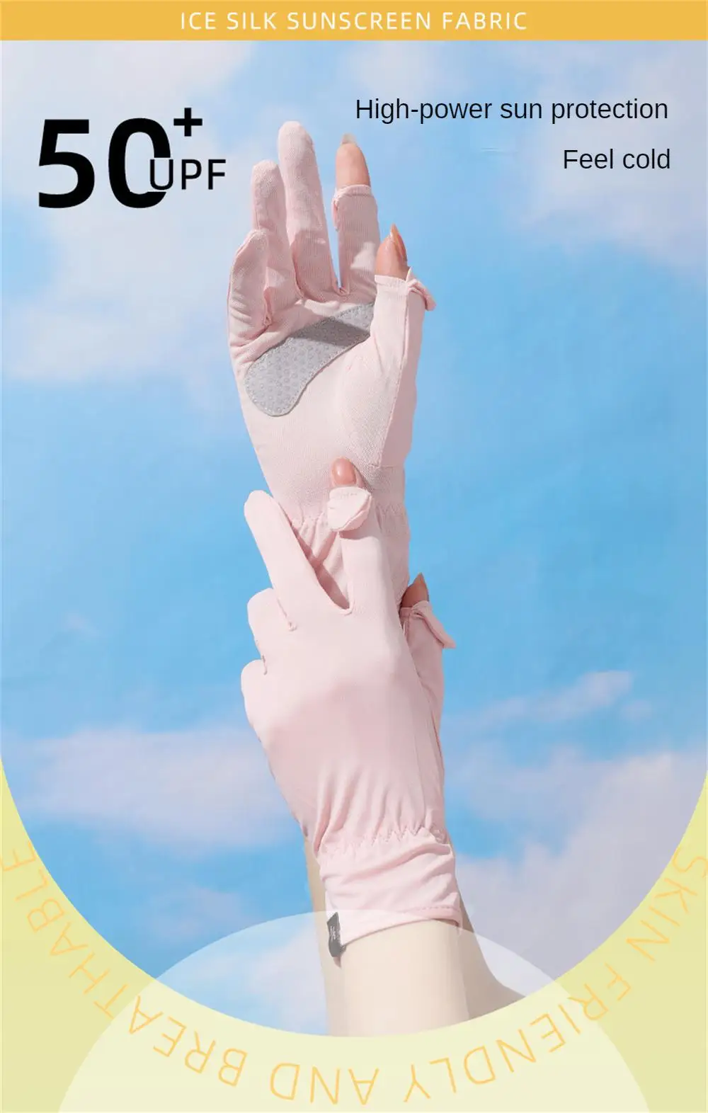 Ледяной шелковый браслет ледяной шелк половина пальцев для фитнеса против солнечных ожогов без пиллинга Противоскользящий Проветриваемый рукав для девушек аниме тонкий бант