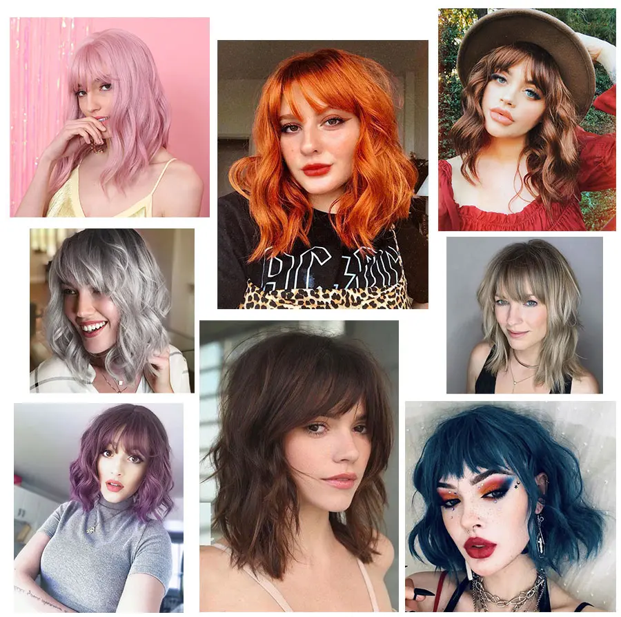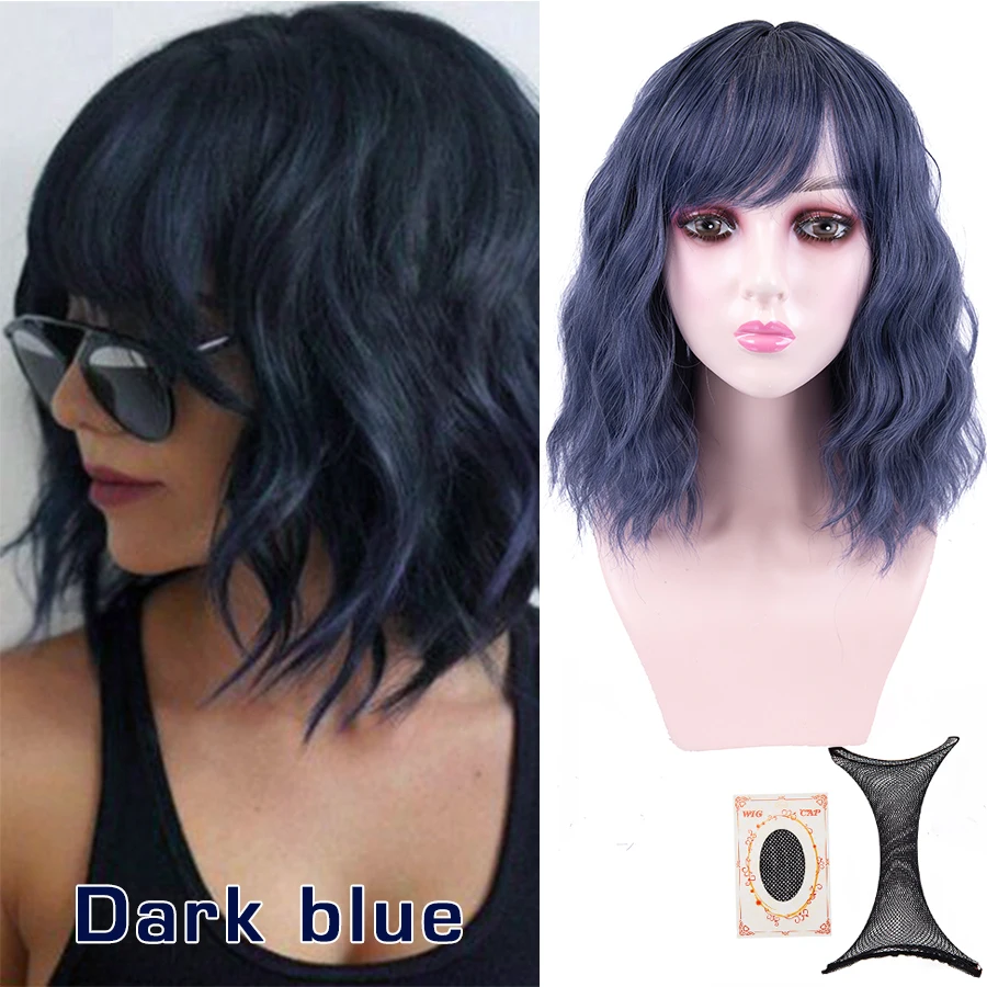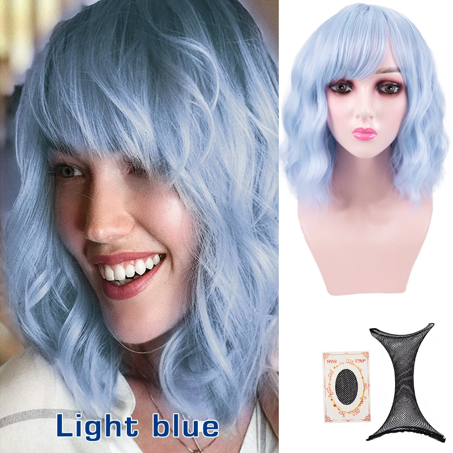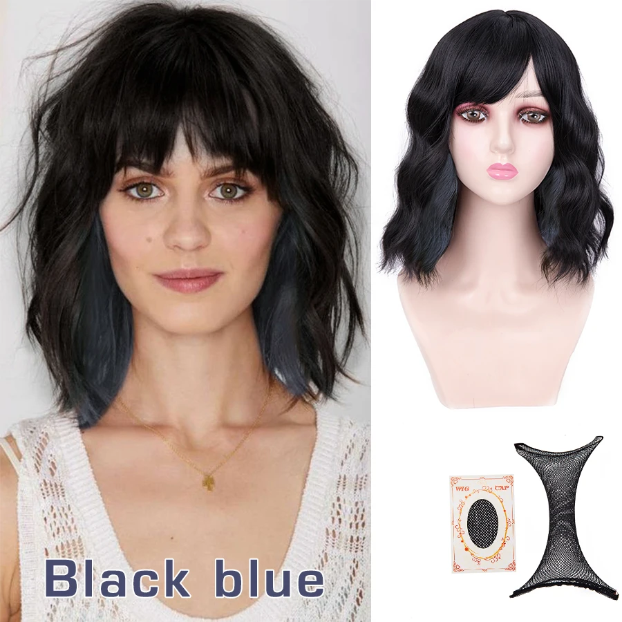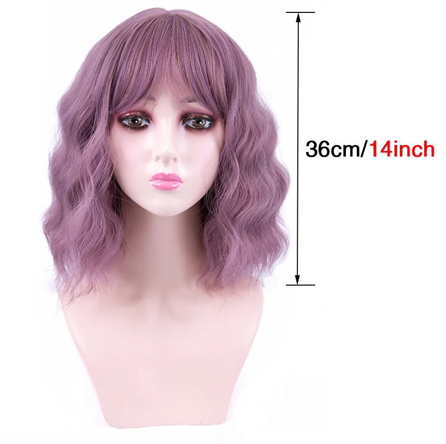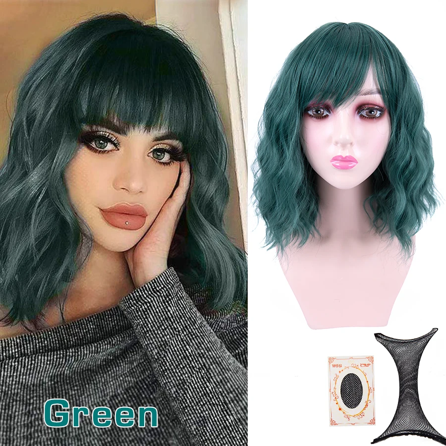 Short Bob Wig With Bangs Cosplay Water Wave Synthetic Hair Wigs
