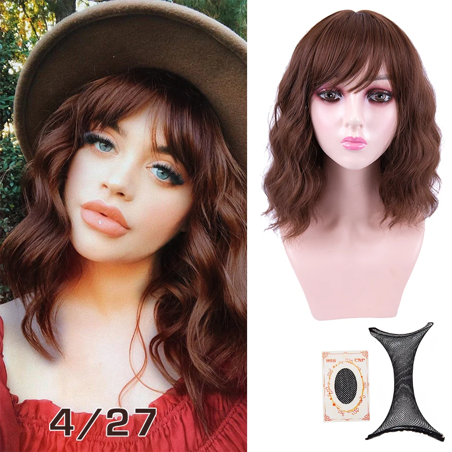 Short Wavy Wig with Bangs Short Bob Wigs for Women
