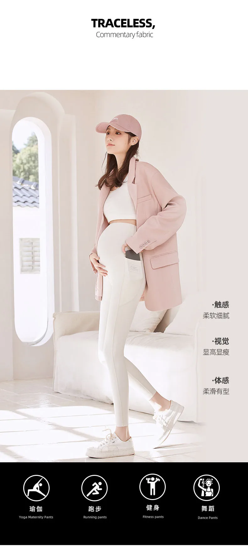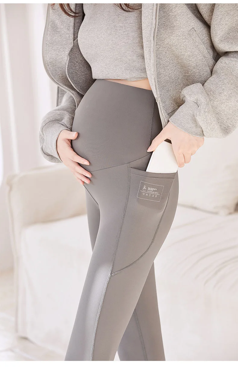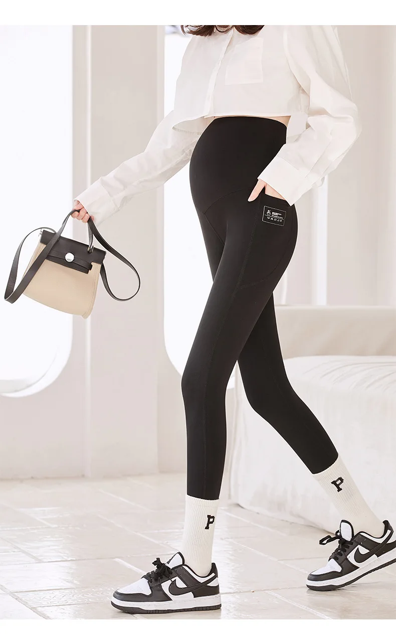 Леггинсы для беременных с высокой талией, женские леггинсы с карманами для йоги, спорта, фитнеса, бесшовная Одежда для беременных женщин