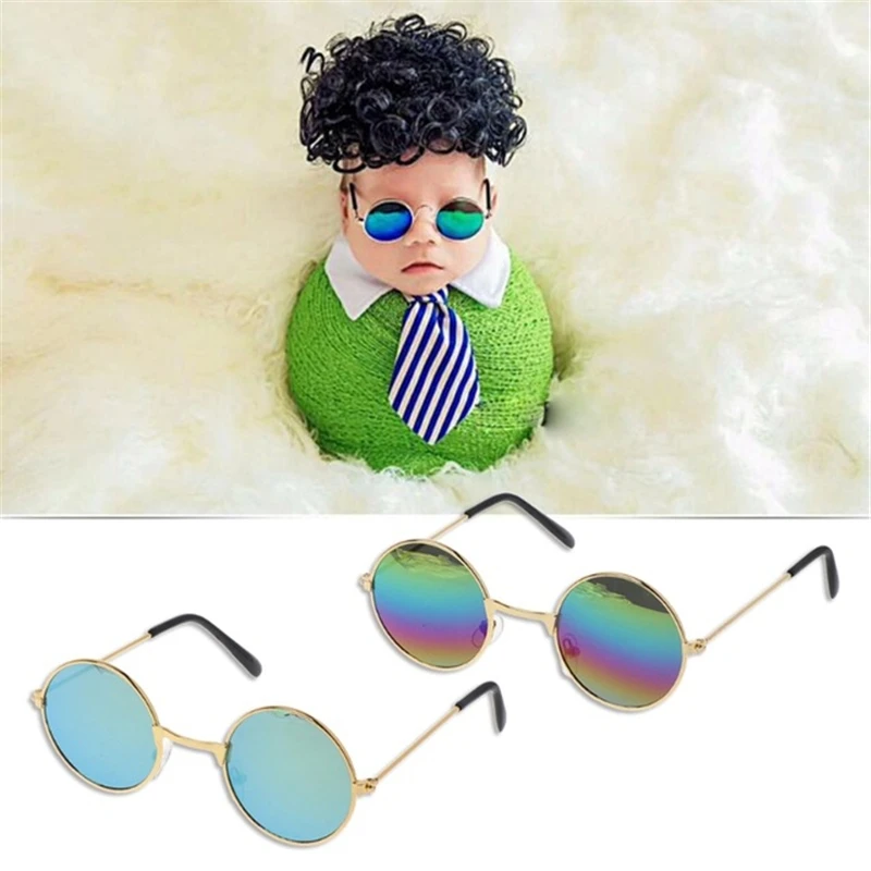 Легкие металлические очки для новорожденных разных видов, плоские классические очки для младенцев, реквизит для съемки