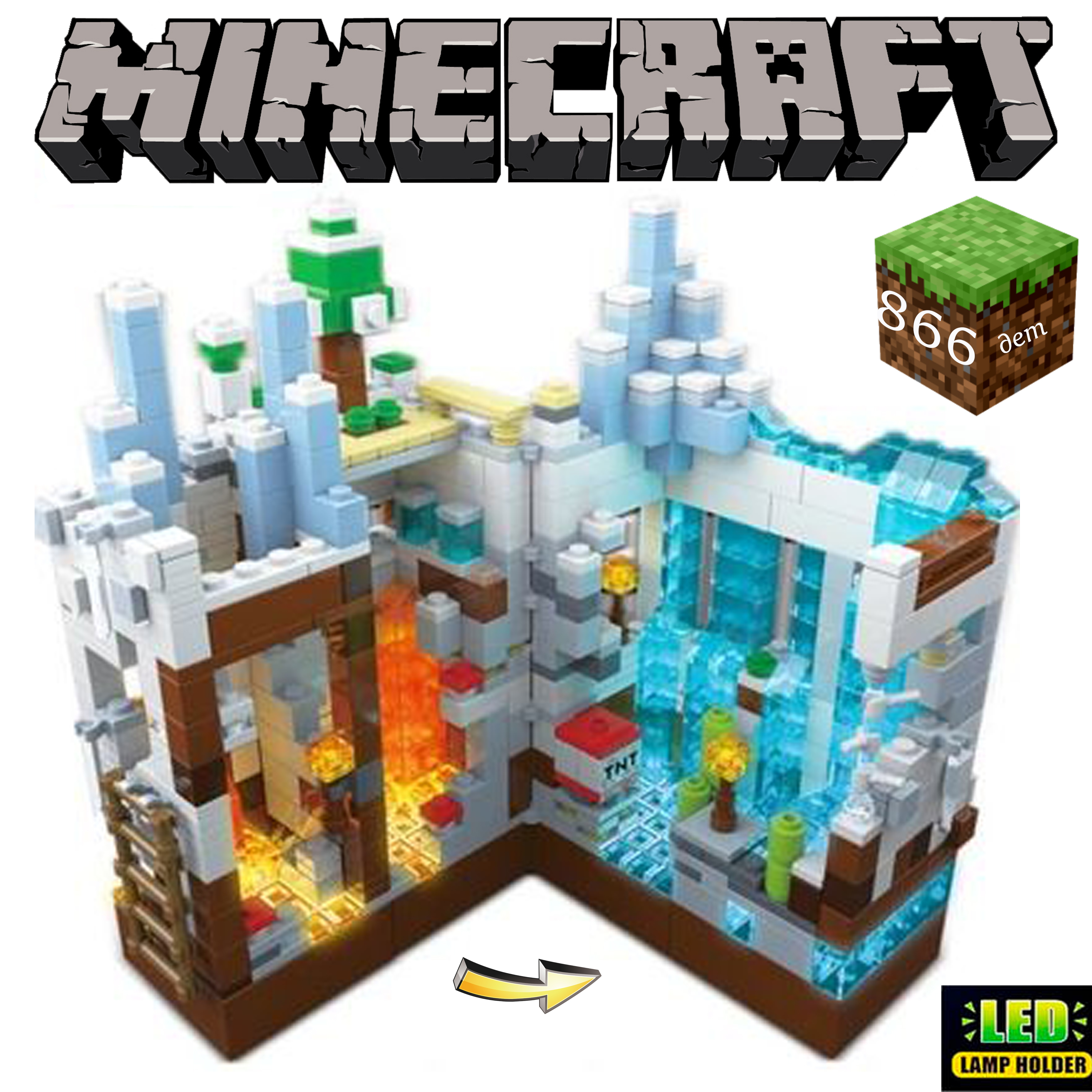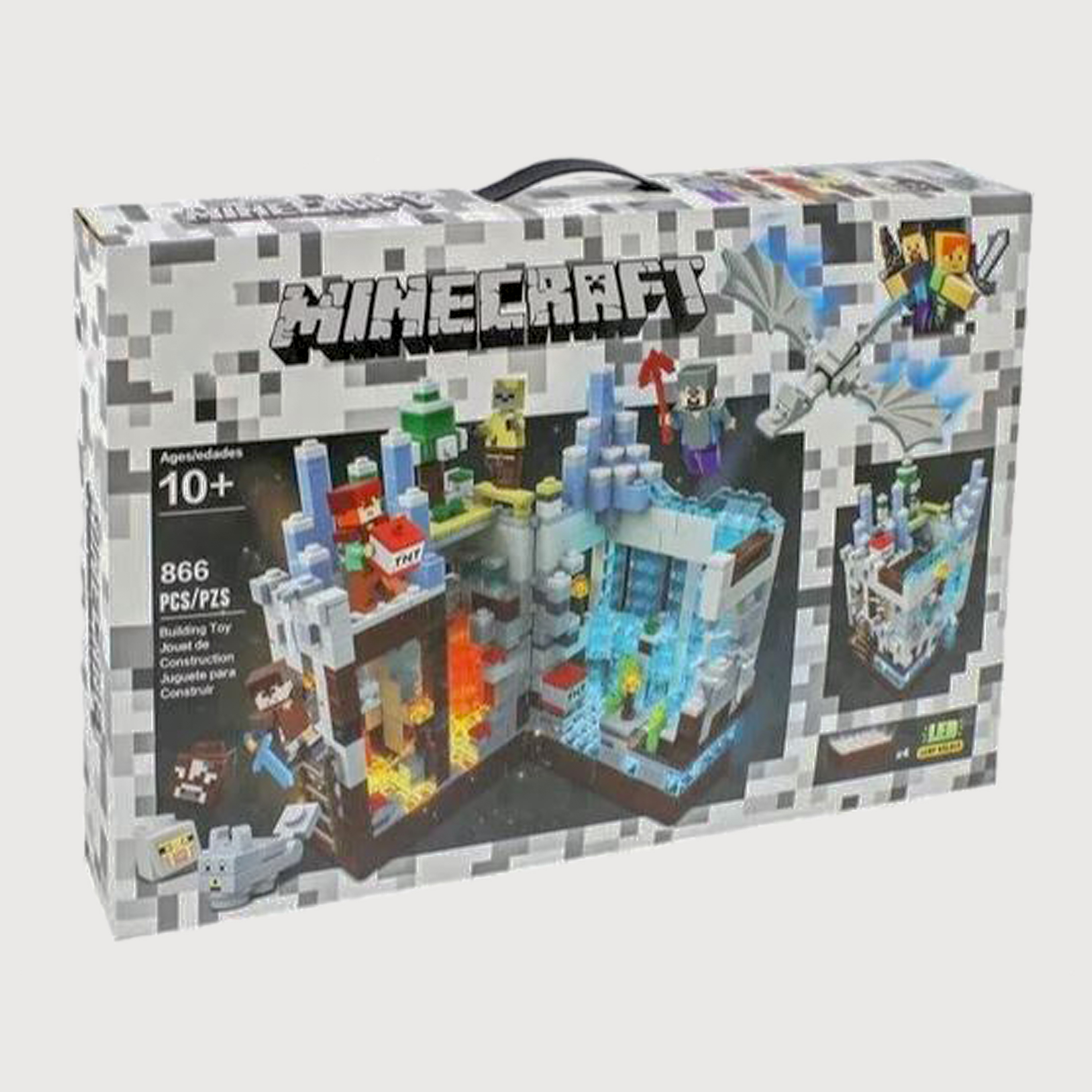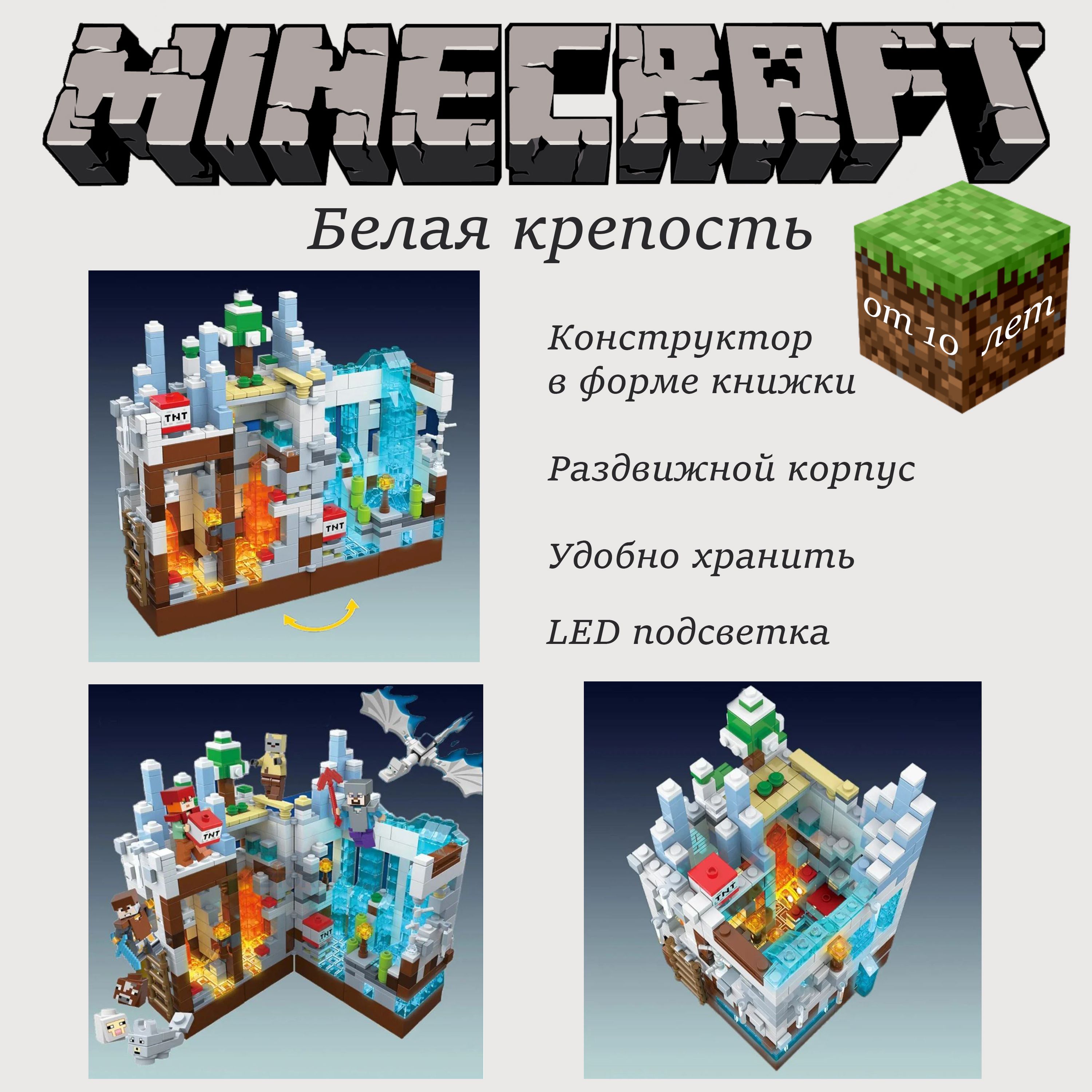 Лего, конструктор для мальчика, Майнкрафт, Minecraft Белая крепость с LED подсветкой 866 деталей (совместим с конструкторами лего)
