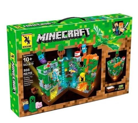 Лего, конструктор для мальчика, Майнкрафт, Minecraft Зеленая крепость с LED подсветкой 866 деталей (совместим с конструкторами лего)