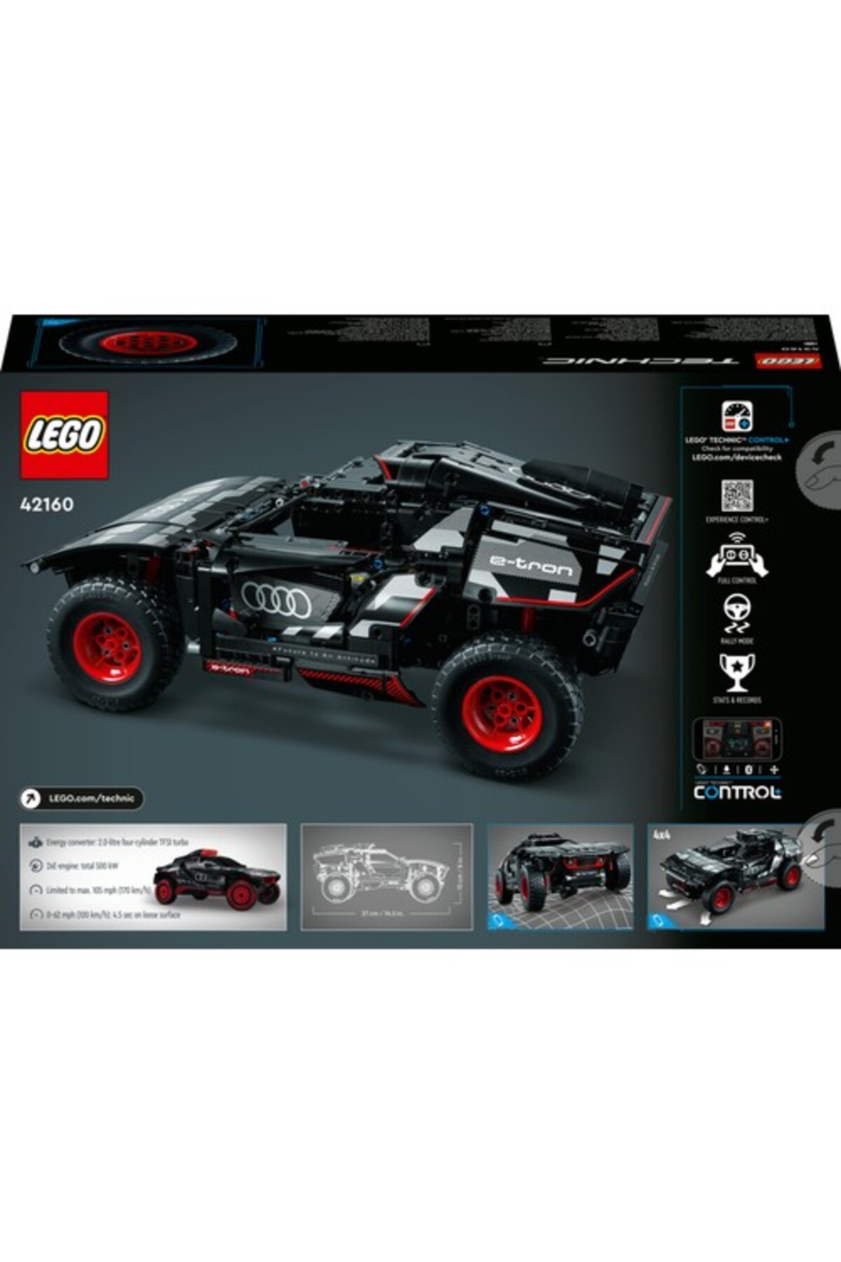 Это техника LEGO®™Поощряйте детей строить раллийный автомобиль с дистанционным управлением из модельного набора Audi RS Q E-tron.