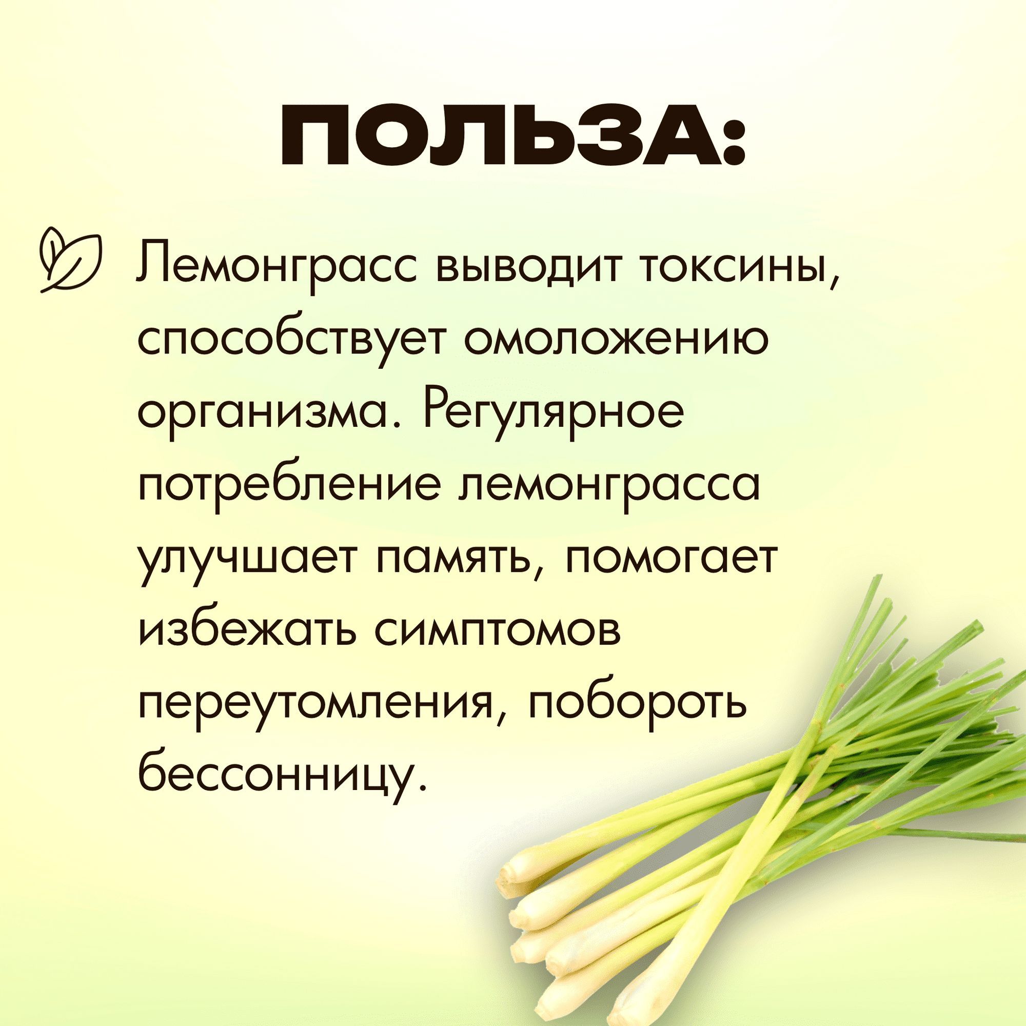 Лемонграсс сушеный богат витамином С и антиоксидантами, которые способствуют укреплению иммунной системы и борьбе с свободными радикалами. Он также может помочь улучшить пищеварение и снизить уровень стресса благодаря своим успокаивающим свойствам.