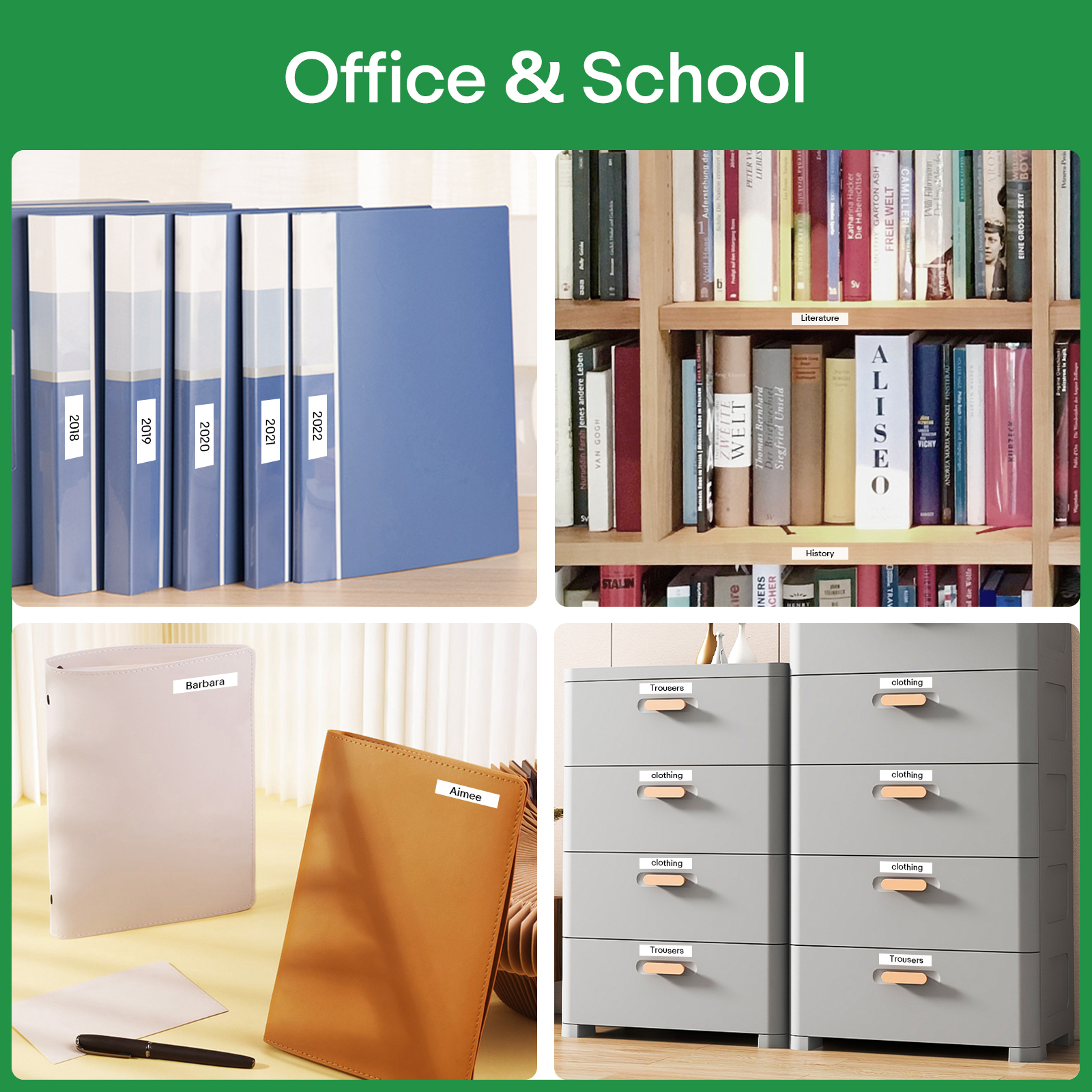 Бытовые применения: хранение товаров для дома, идентификация кухонных предметов, классификация одежды и т. д.