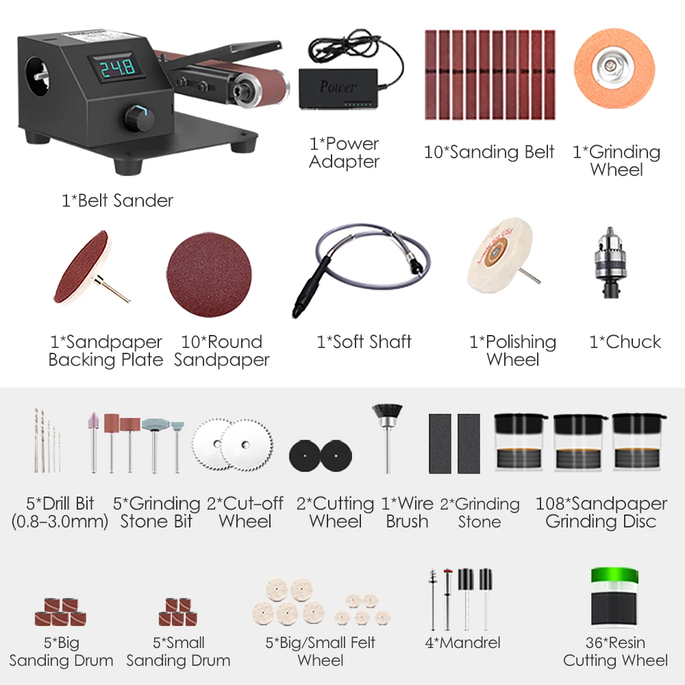 Ленточная шлифовальная машинка, 30 мм, 10 шлифовальных лент, 300 Вт