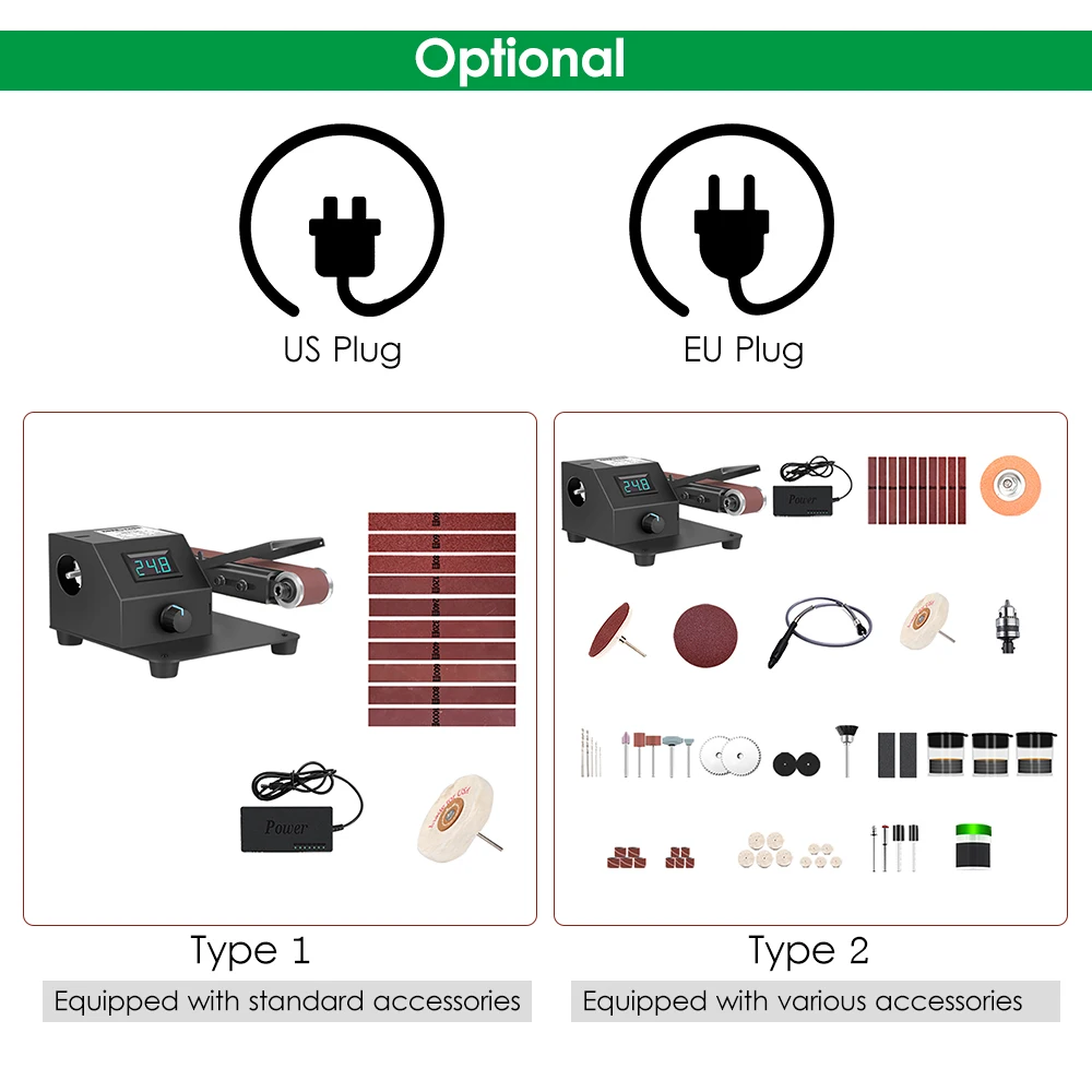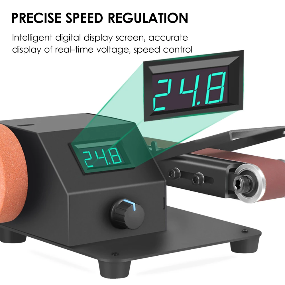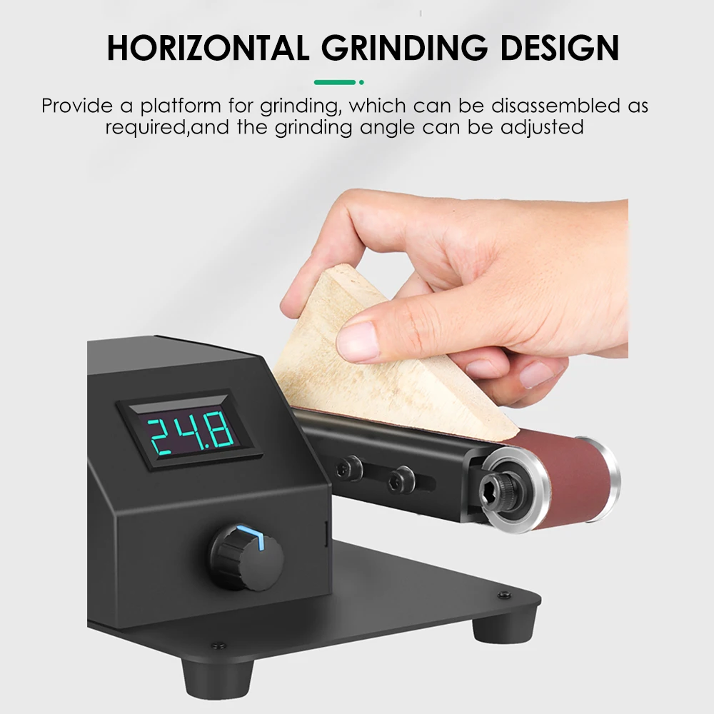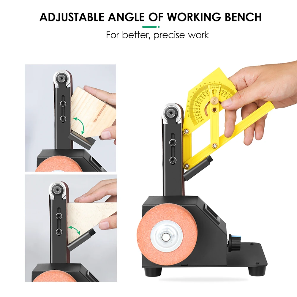 Многоугольное шлифование, простота использования: электрическая ленточная шлифовальная машина может вращаться вперед и назад, а угол рабочего стола регулируется для лучшей и точной работы.
