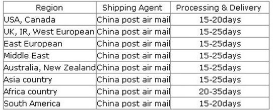 Авиа-отправление Почты Китая обычно Товар приходит в течение 15-25 рабочих дней после отправки.