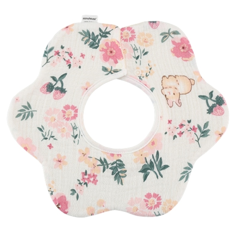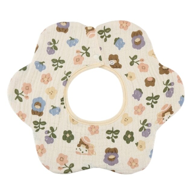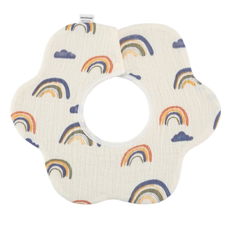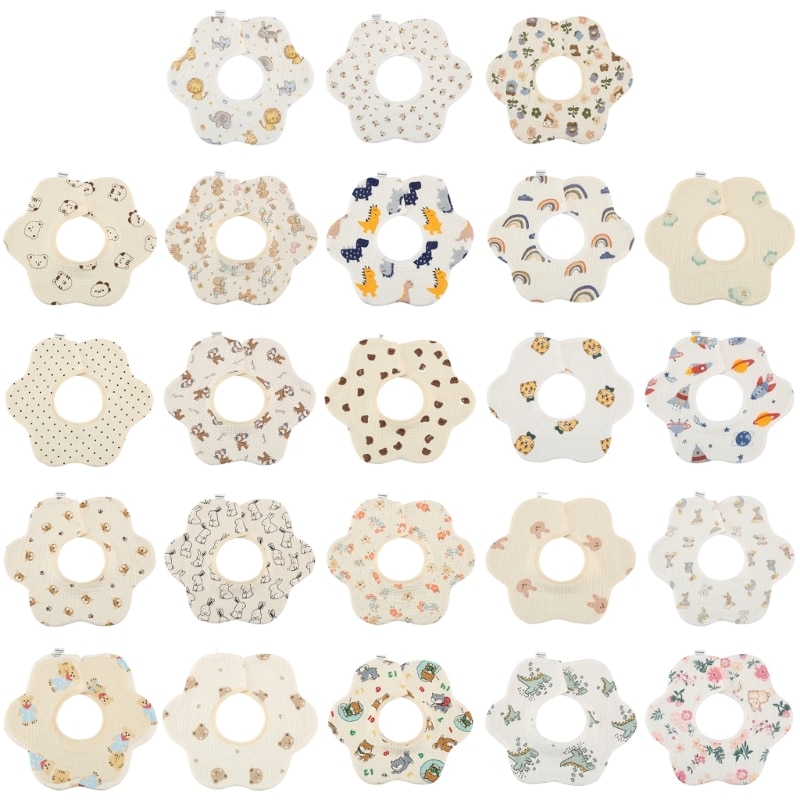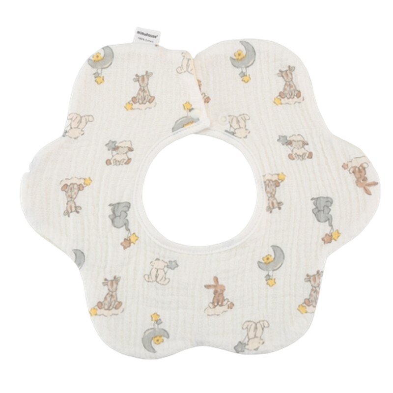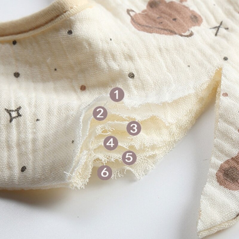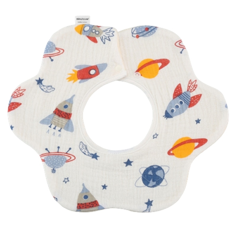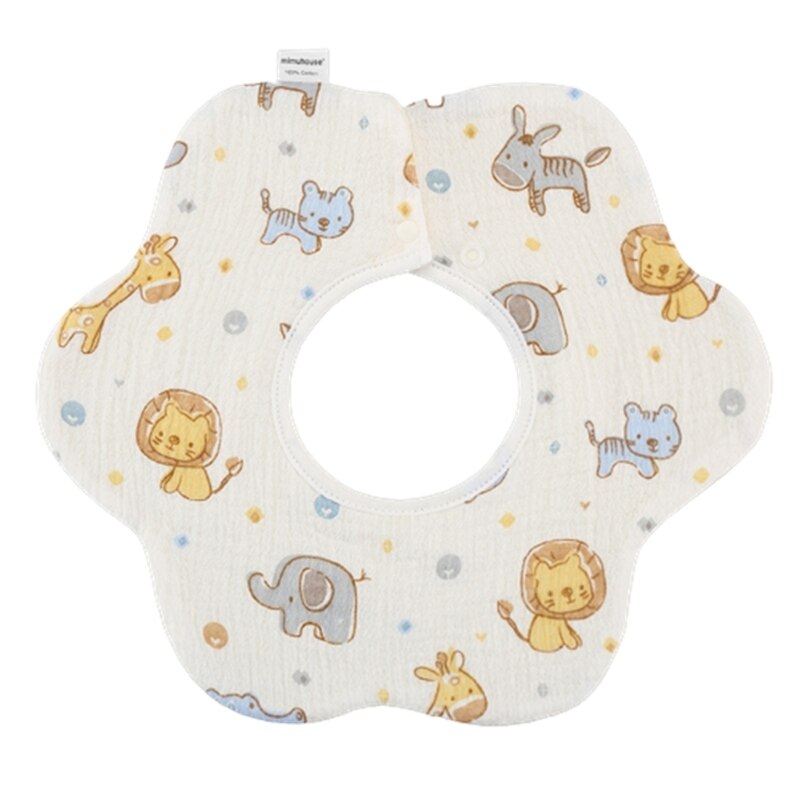 Хлопковый нагрудник с мультяшным принтом, круглая шея на 360 градусов, нейтральный гендерный узор, может быть легко подходящим для разных младенцев.