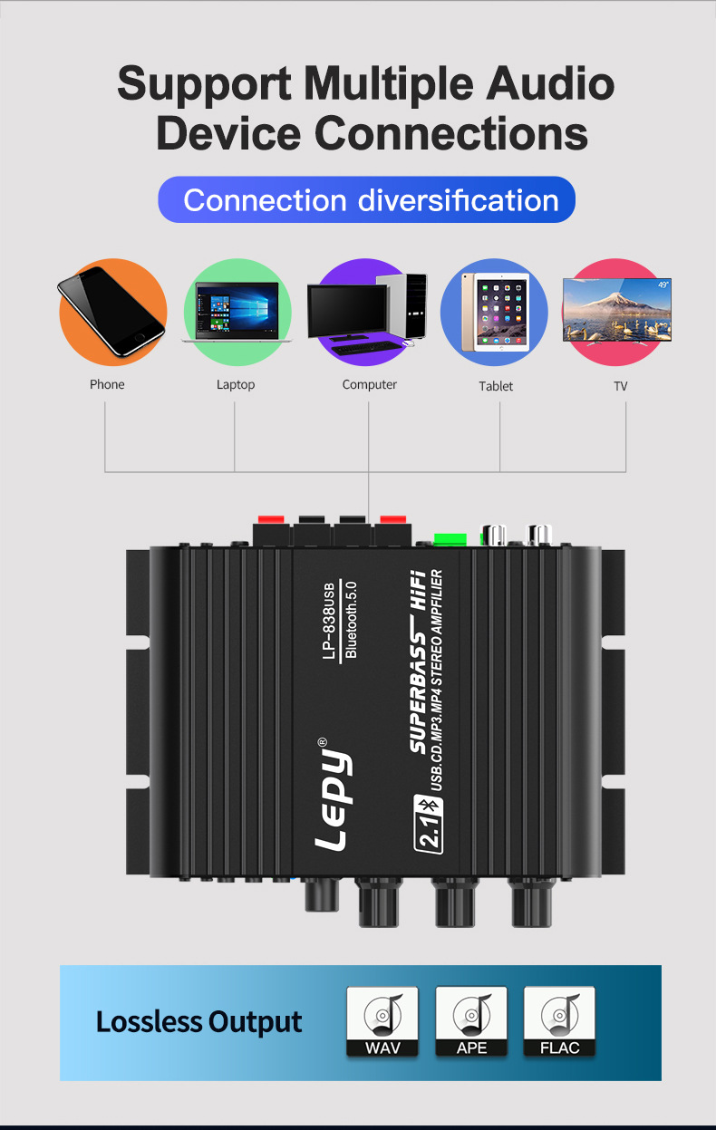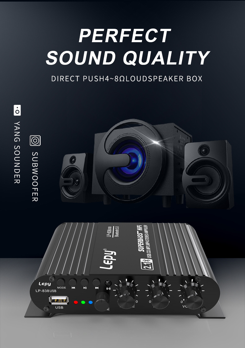 LEPY LP-838USB Bluetooth 5,0 усилитель 2,1 3 канала супер бас Поддержка USB без потерь воспроизведения музыки с дистанционным управлением цифровой усилитель