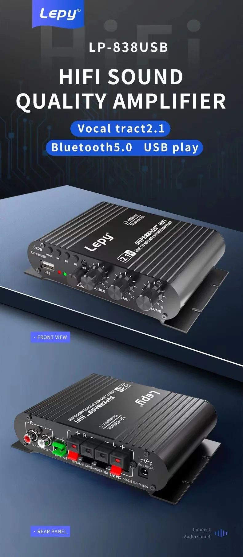 LEPY LP-838USB Bluetooth 5,0 усилитель 2,1 3 канала супер бас Поддержка USB без потерь воспроизведения музыки с дистанционным управлением цифровой усилитель