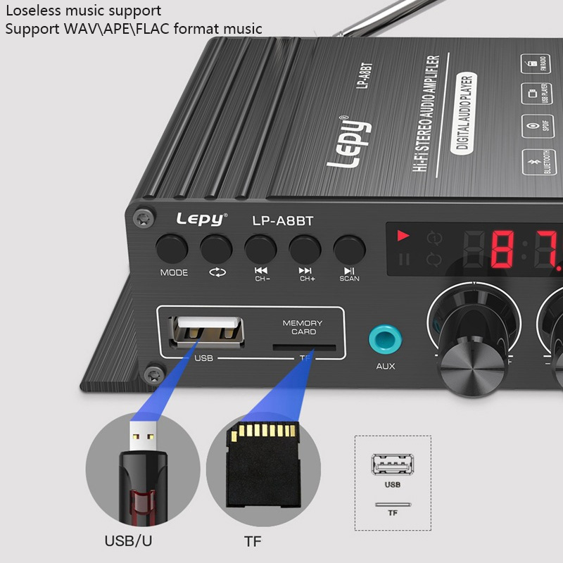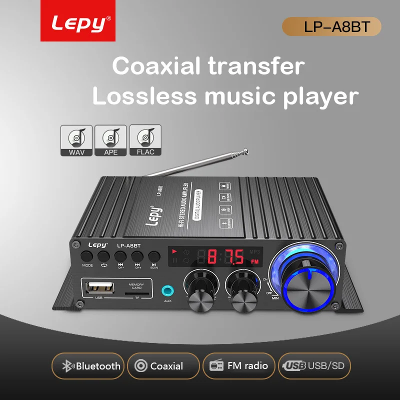 LEPY LP-A8BT коаксиальный декодирующий усилитель мощности FM USB SD музыкальный плеер без потерь 2x30 Вт усилитель высокой мощности 5,0 Bluetooth