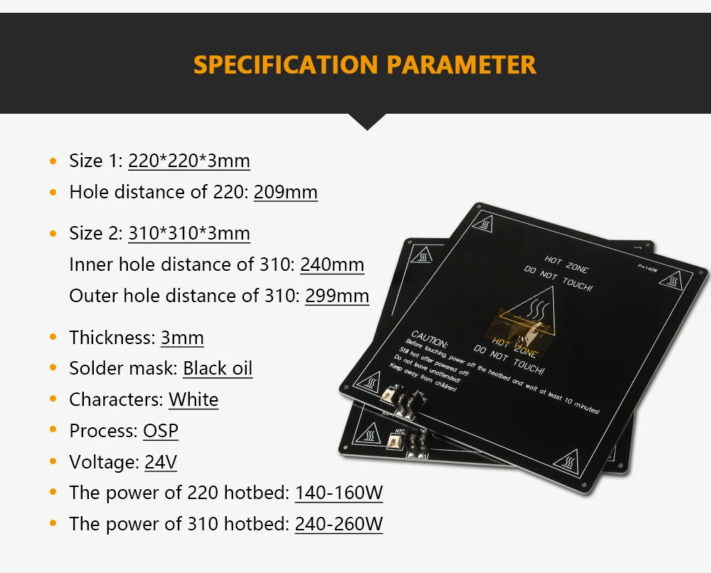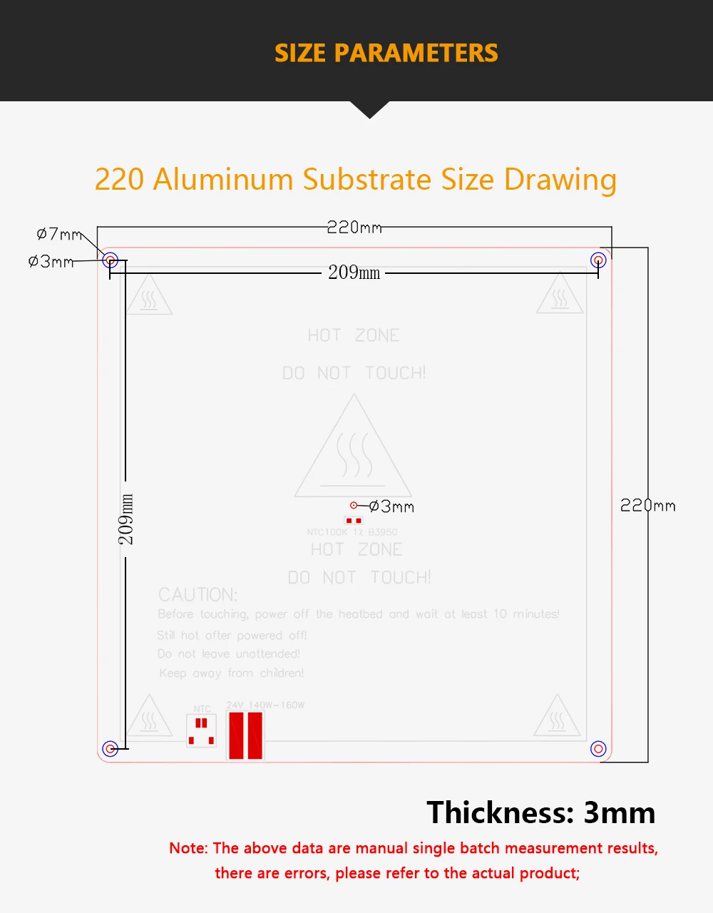 LERDGE 3D Printer Parts 3mm Aluminum Substrate Hotbed MK2A Heated Hot bed Plate Heating Platform Accessories 220mm 310mm