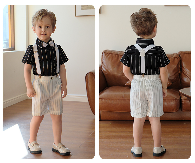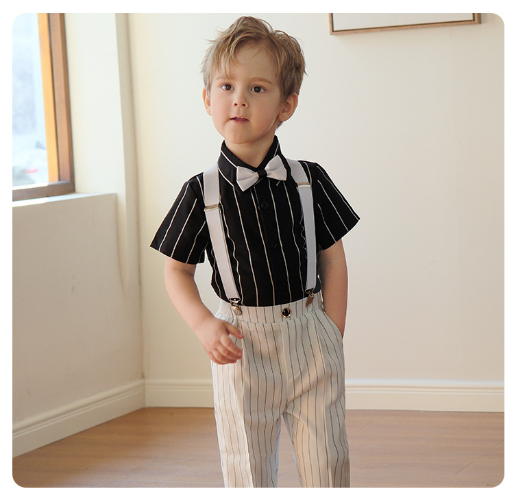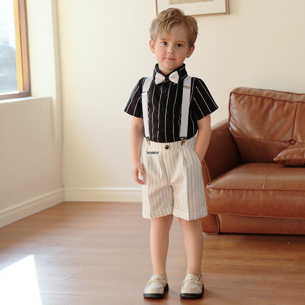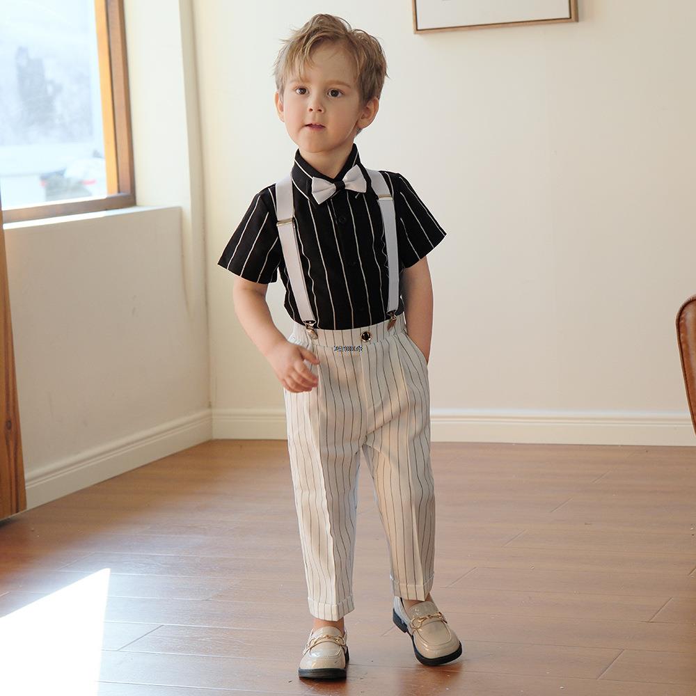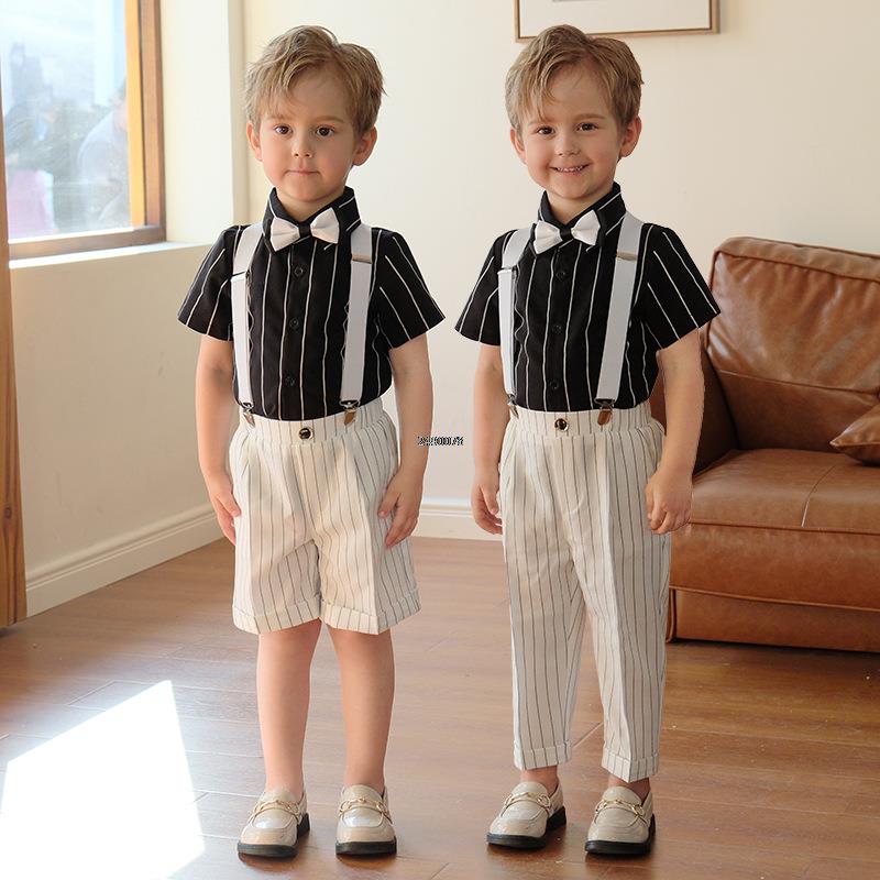Летнее платье для фотографирования для маленьких мальчиков, детский костюм в белую полоску для выступлений, Детская официальная одежда для выступлений на выпускной церемонии, смокинга