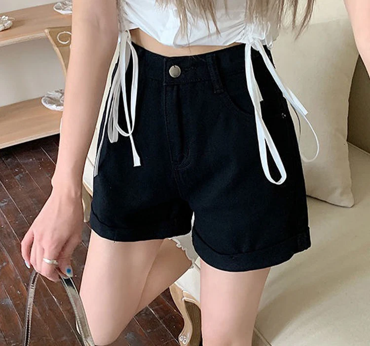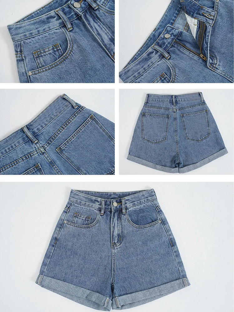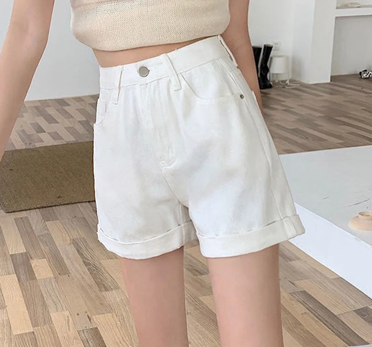 Летние белые джинсовые шорты, женские повседневные Прямые шорты с высокой талией, женская уличная одежда Y2K, короткие джинсы с широкими штанинами для женщин 2023
