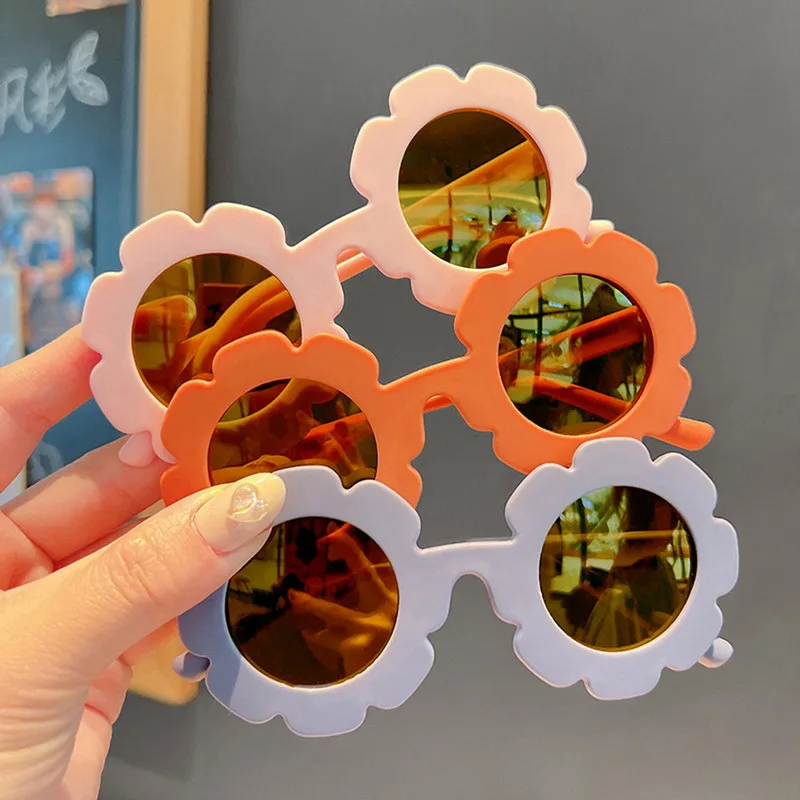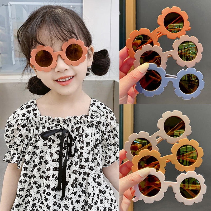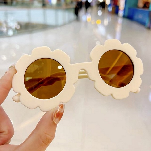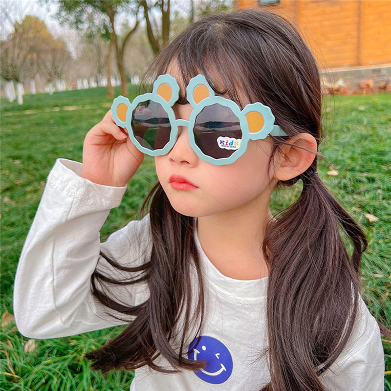 Летние детские круглые солнцезащитные очки в виде подсолнухов, милые Мультяшные солнцезащитные очки для мальчиков и девочек в виде медведя, кота, радуги, солнцезащитные очки с УФ-защитой, классические детские очки