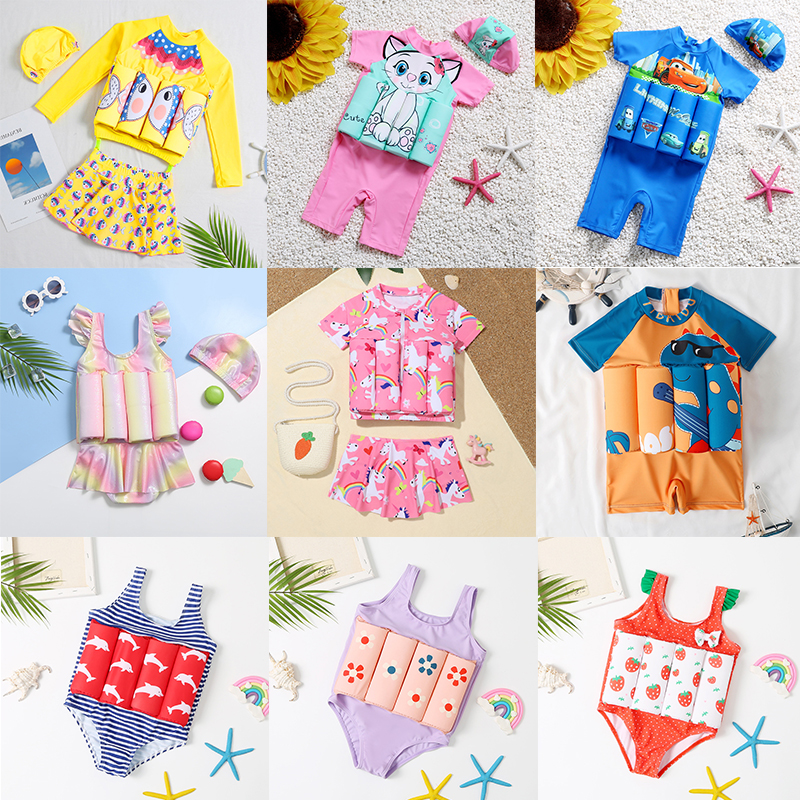 Летние Детские плавучие Мультяшные плавающие купальники для малышей плавающий купальник съемные плавучие палочки для мальчиков и девочек плавательная одежда
