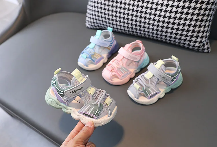 Летние дышащие детские повседневные туфли, удобные водонепроницаемые однотонные кроссовки для маленьких девочек и мальчиков, быстросохнущие детские сандалии для малышей 21-30