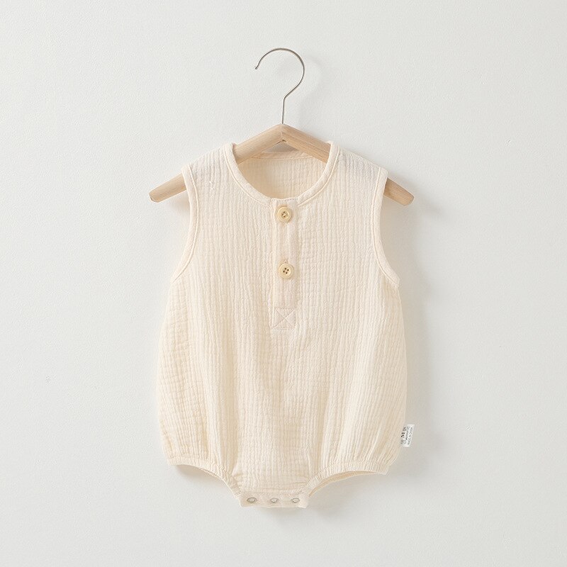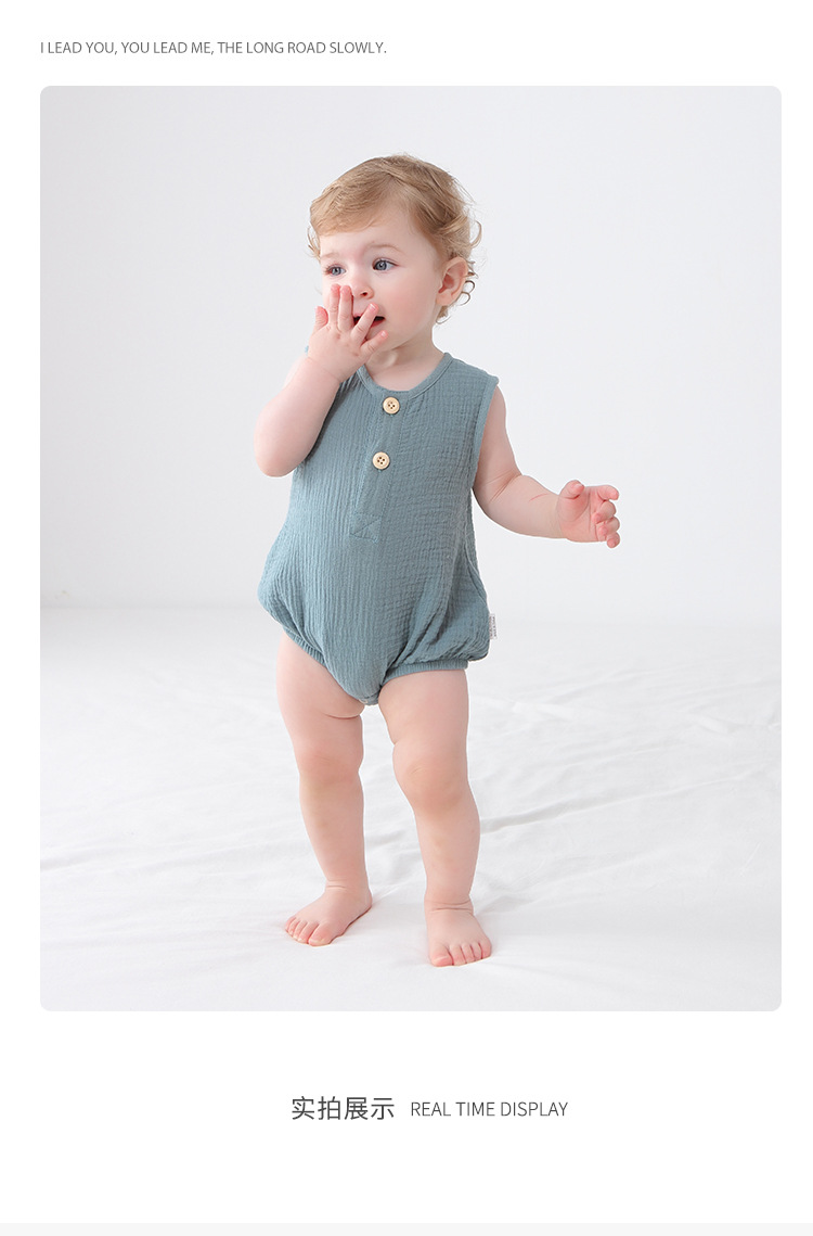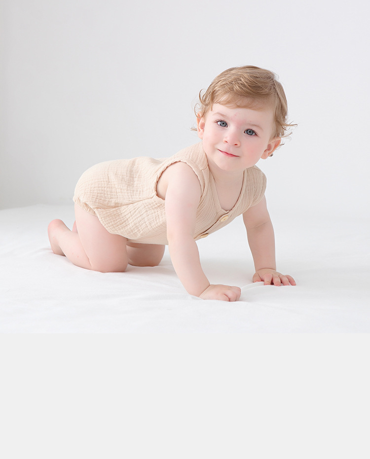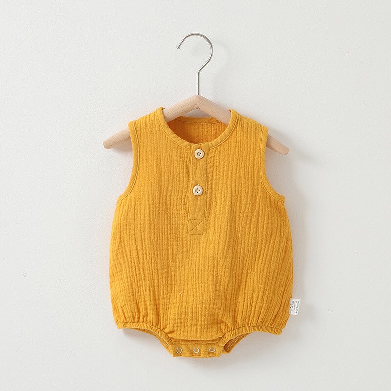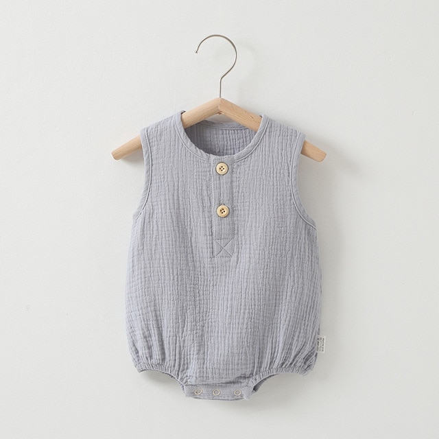Летние Комбинезоны для маленьких мальчиков и девочек, детский однотонный комбинезон из муслина и хлопка без рукавов, детская одежда