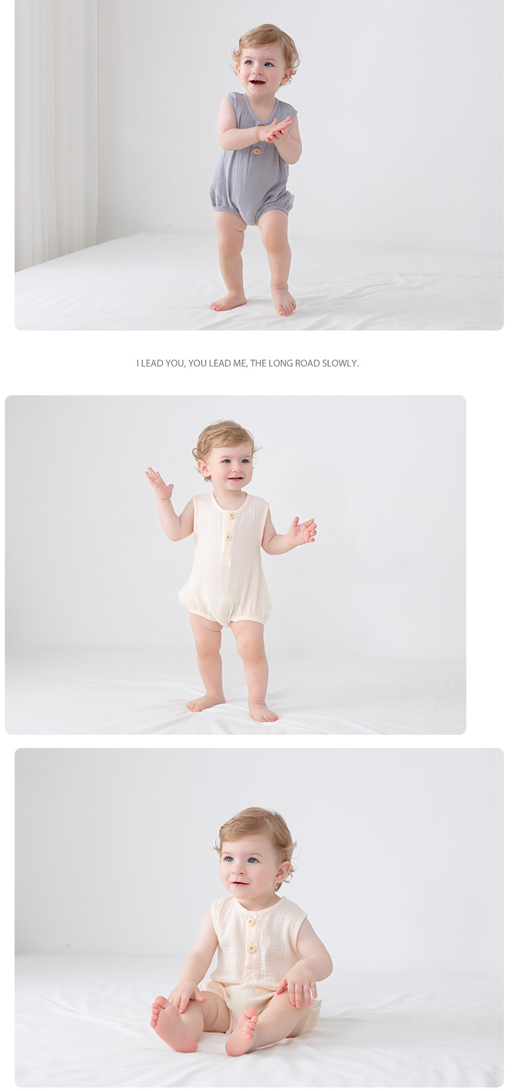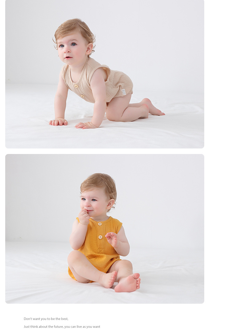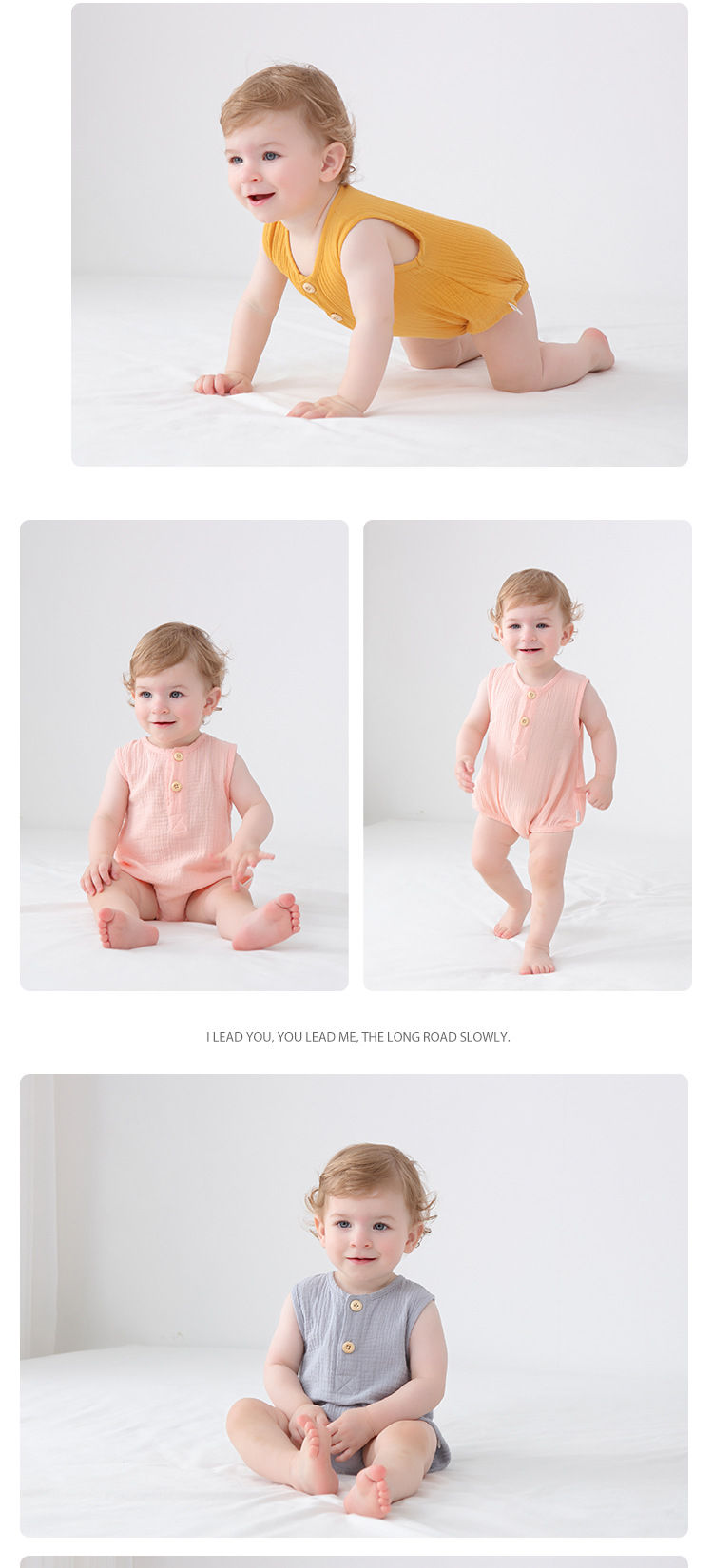 Летние Комбинезоны для маленьких мальчиков и девочек, детский однотонный комбинезон из муслина и хлопка без рукавов, детская одежда
