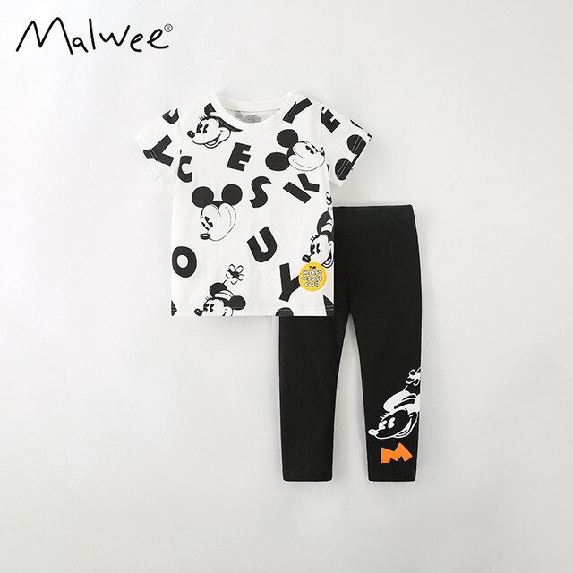 Летние комплекты для девочек из мультфильма Disney, летний топ с принтом + шорты, комплект одежды для девочек, детская одежда