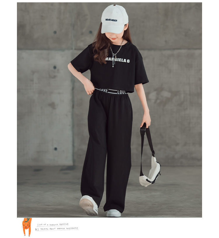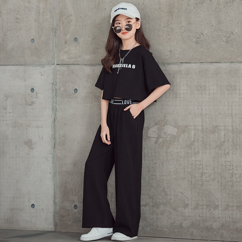 Летние комплекты одежды для девочек-подростков, Детские Модные топы с надписью + штаны, комплект из 2 предметов, детский спортивный костюм