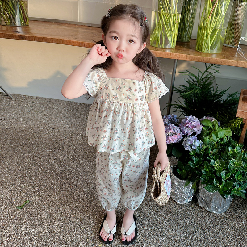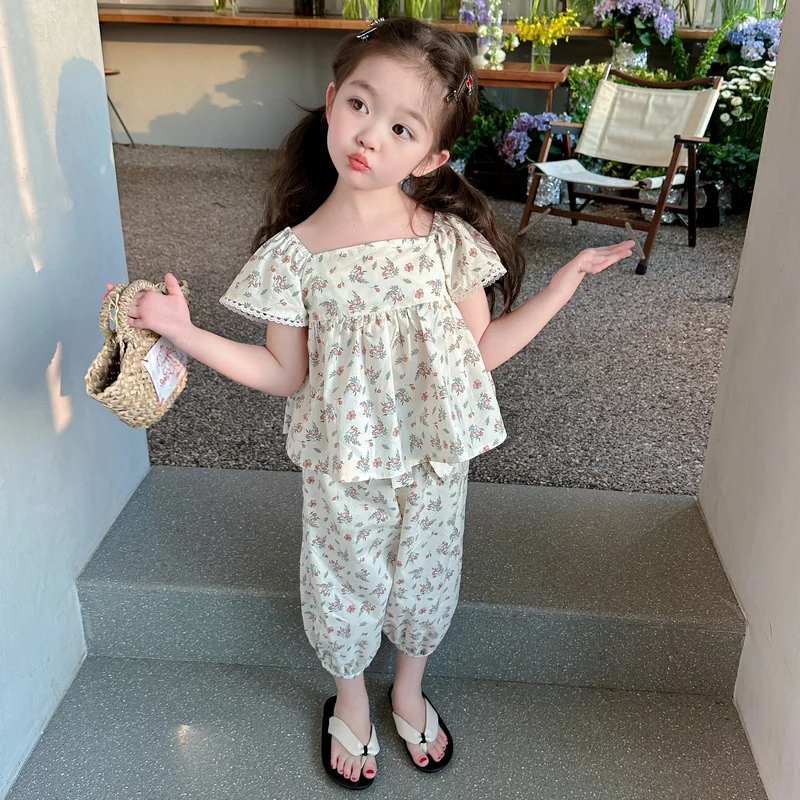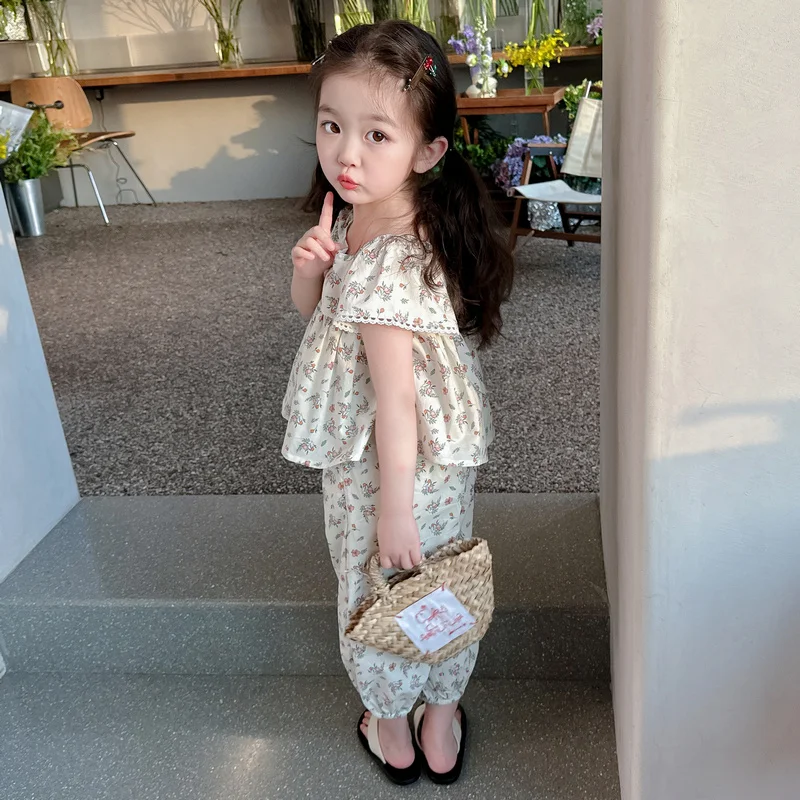 Летние комплекты одежды для маленьких девочек, детские топы, брюки, клетчатая детская одежда, наряды для младенцев, кружевные костюмы принцессы с цветочным рисунком
