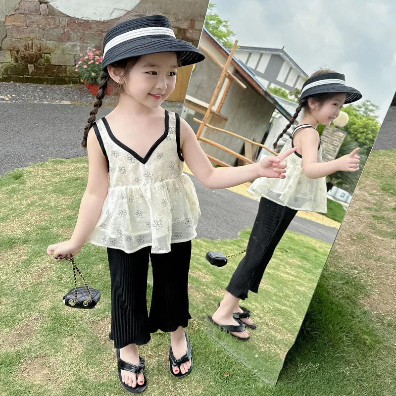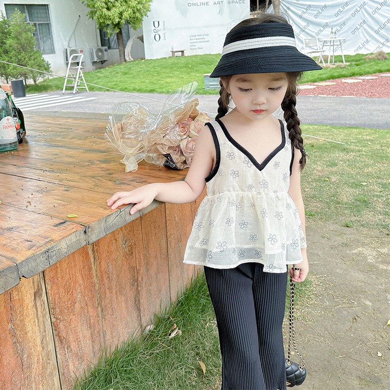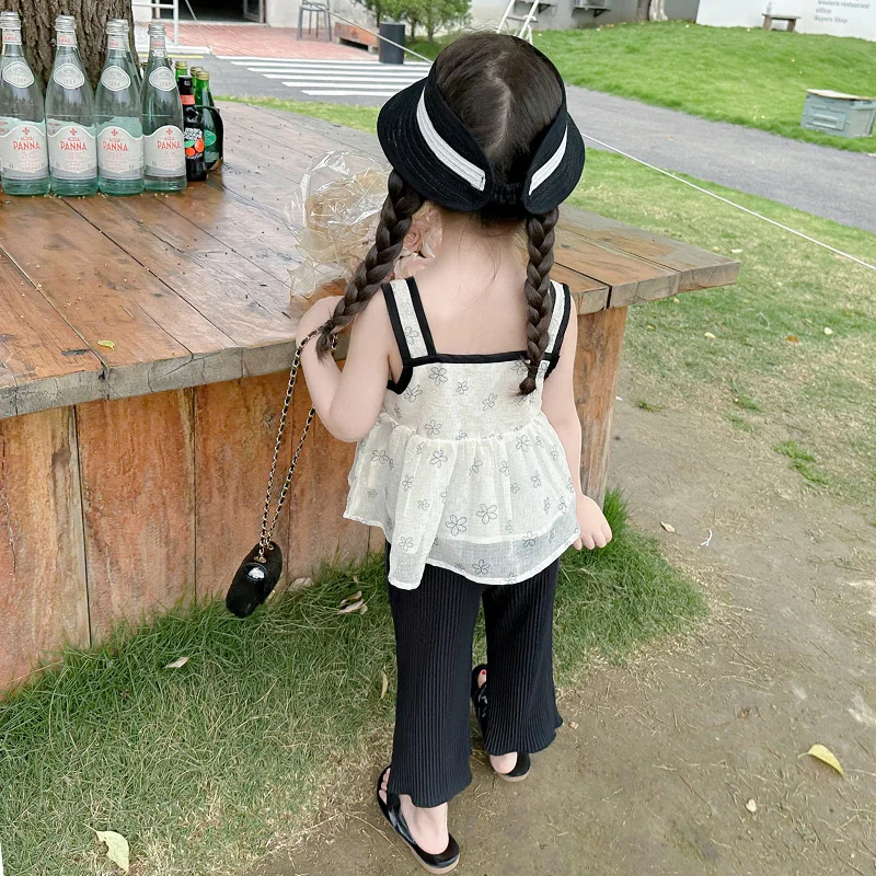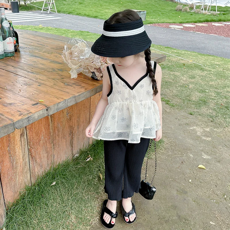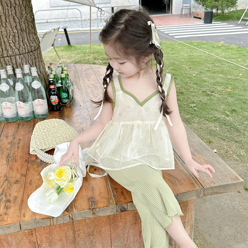 Летние комплекты одежды для маленьких девочек, детский цветочный кружевной жилет, плиссированные брюки, детская одежда, наряды, пляжные праздничные костюмы принцессы