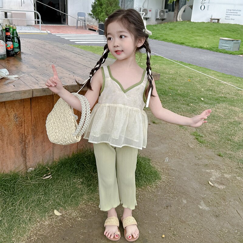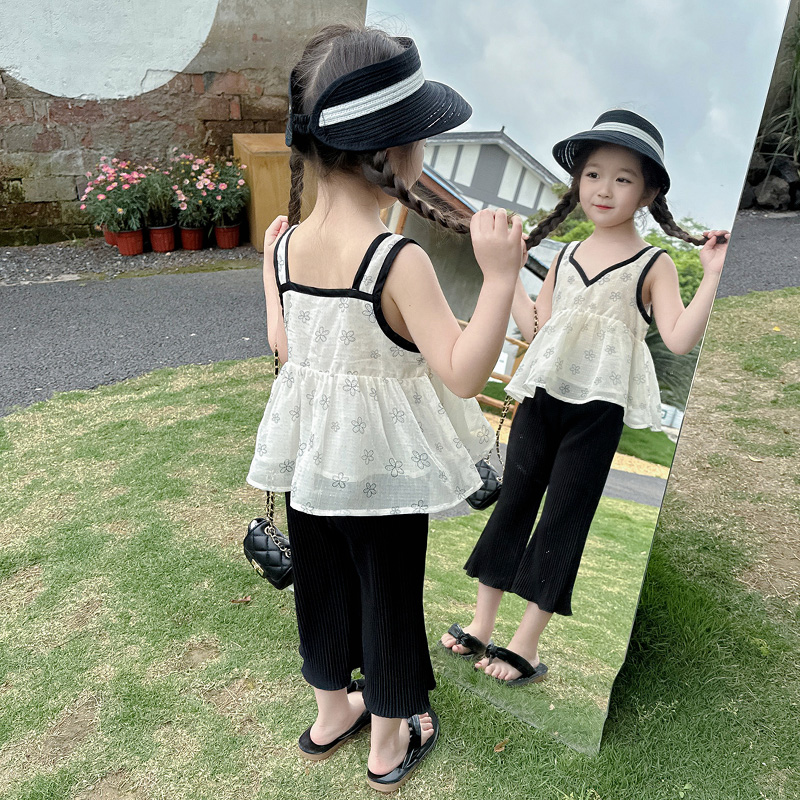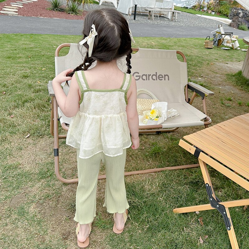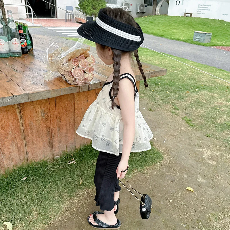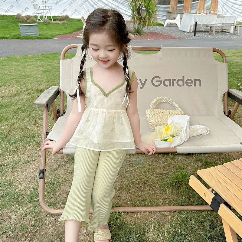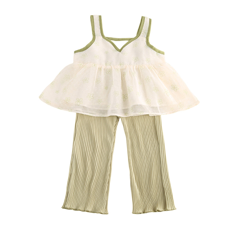 Летние комплекты одежды для маленьких девочек, детский цветочный кружевной жилет, плиссированные брюки, детская одежда, наряды, пляжные праздничные костюмы принцессы