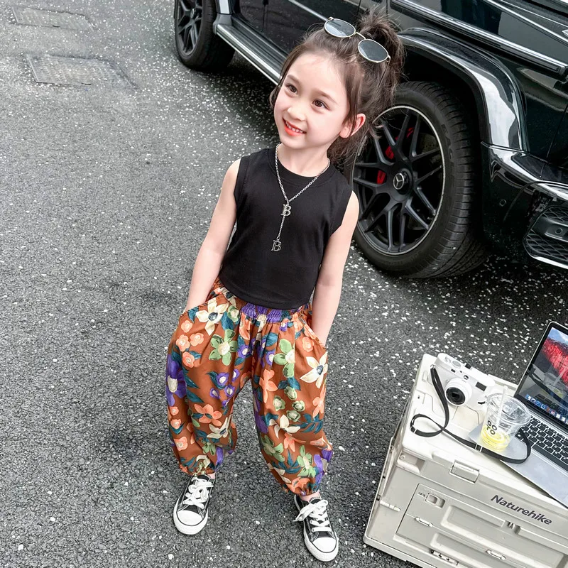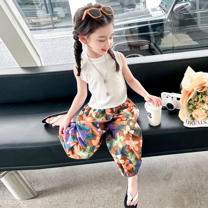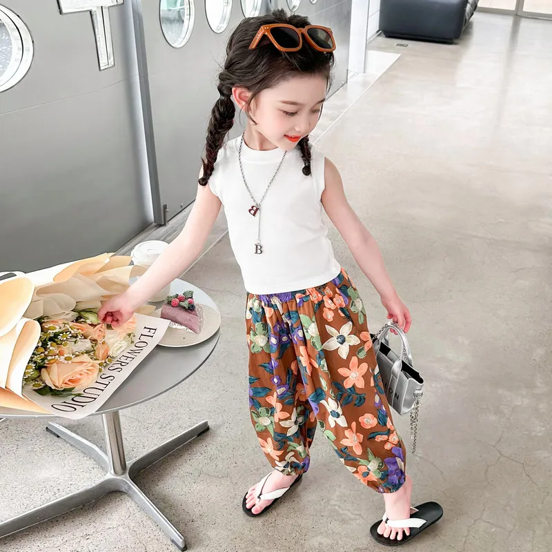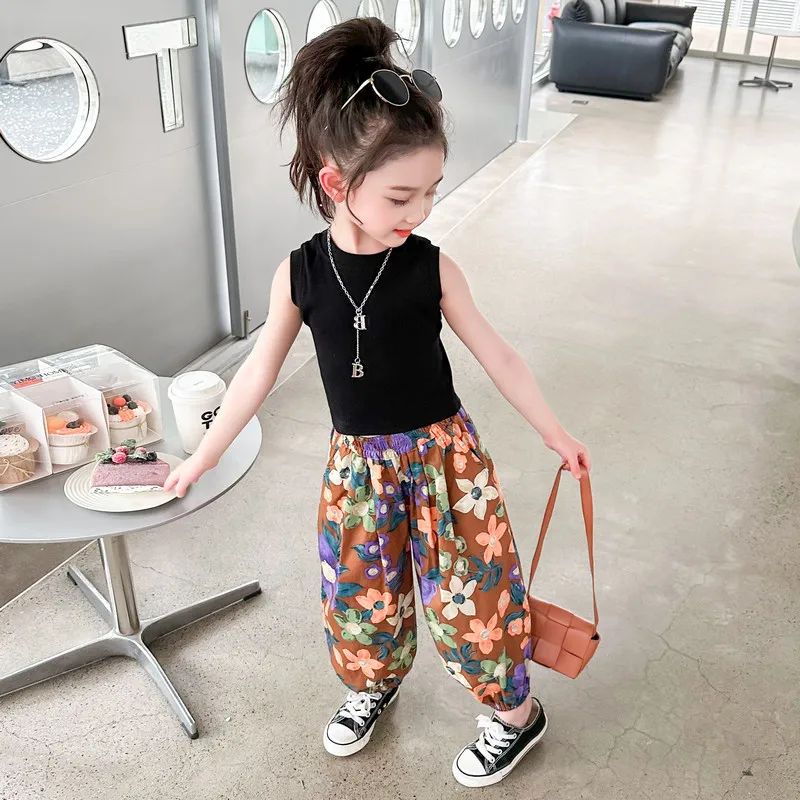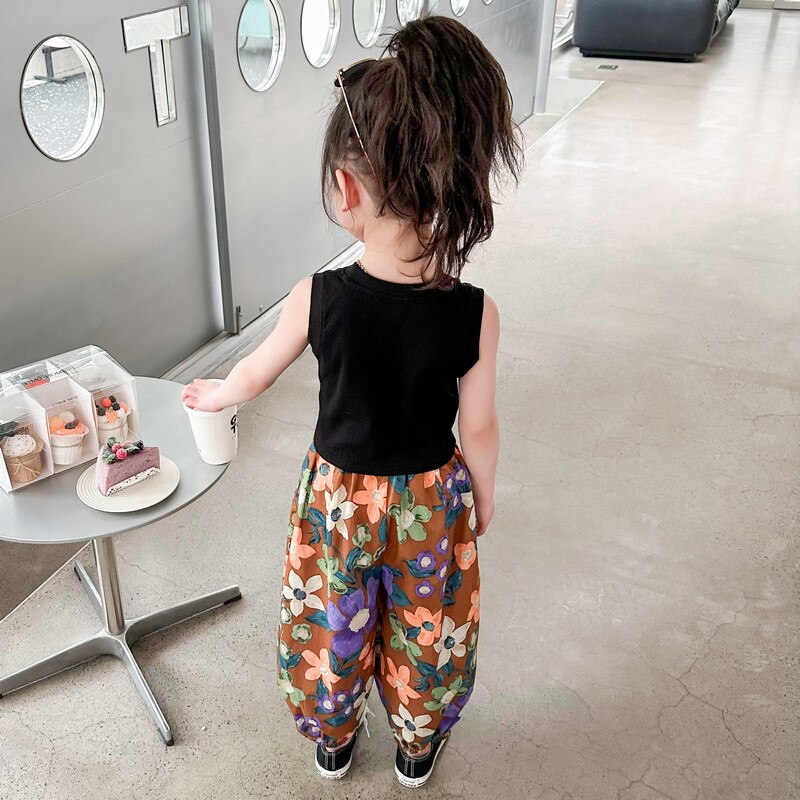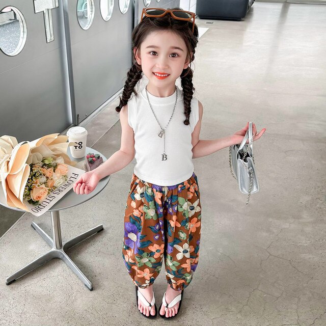 Летние комплекты одежды для маленьких девочек, детский жилет, цветочные брюки, 2 шт., детская повседневная одежда, наряды для младенцев, костюмы принцессы