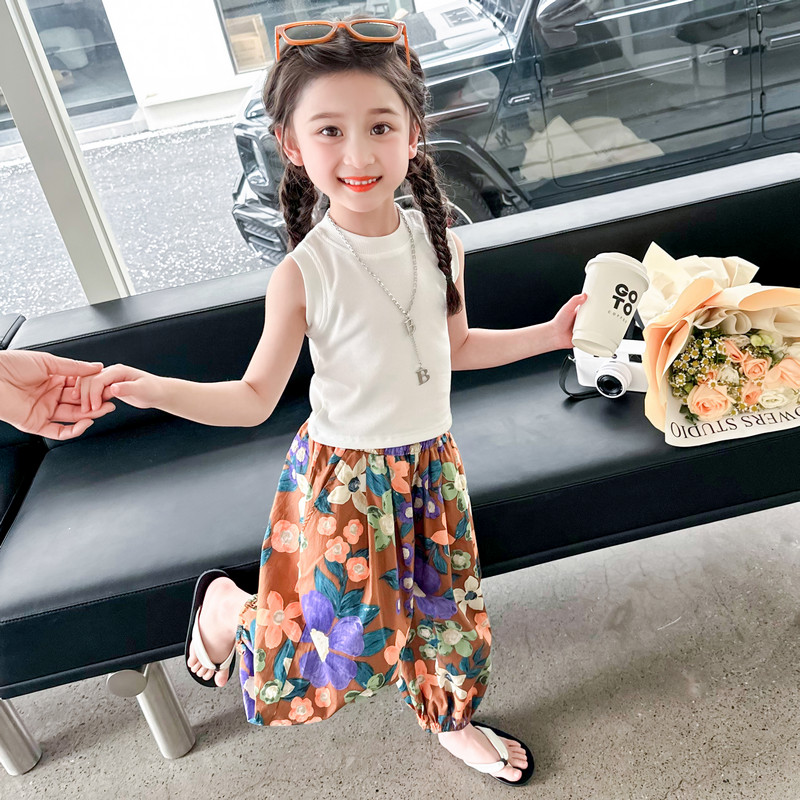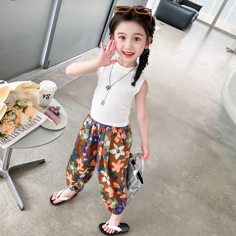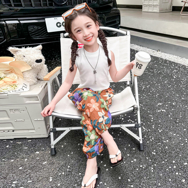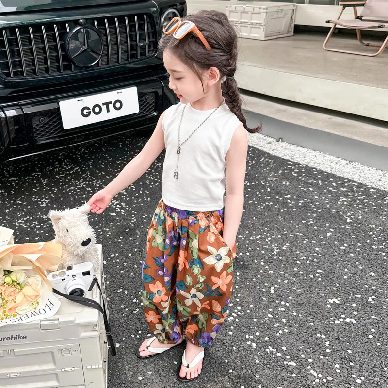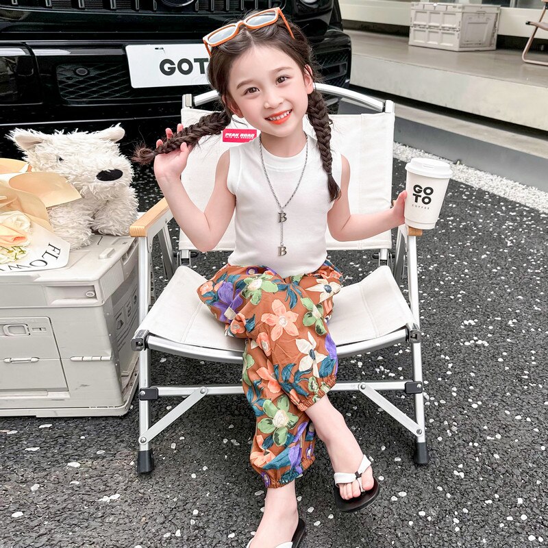 Летние комплекты одежды для маленьких девочек, детский жилет, цветочные брюки, 2 шт., детская повседневная одежда, наряды для младенцев, костюмы принцессы