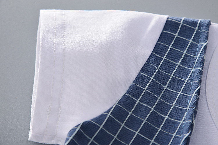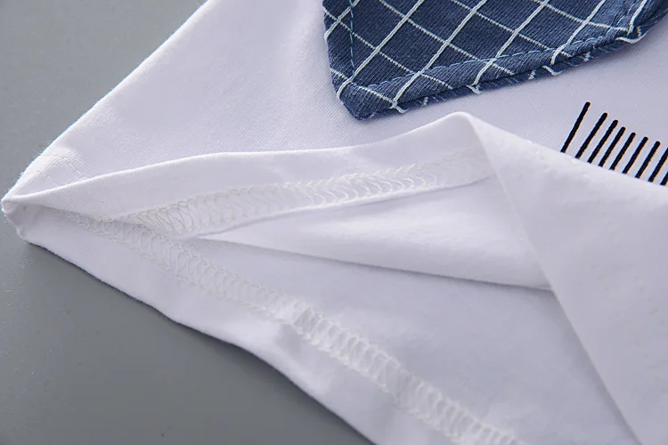 Летние комплекты одежды для маленьких мальчиков 2023, футболка с галстуком в клетку с мультяшным рисунком + шорты, комплект из 2 предметов, одежда для мальчиков