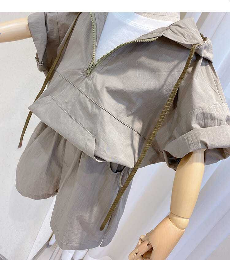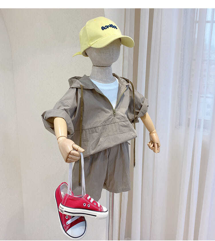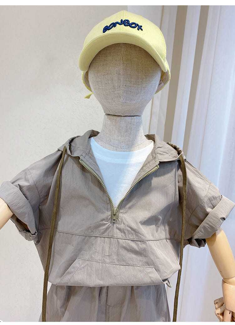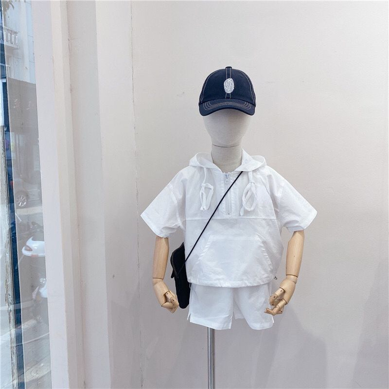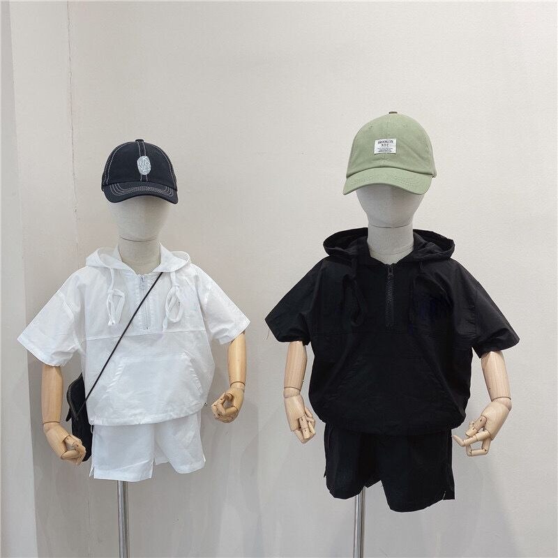 Летние костюмы для мальчиков, новинка 2022, корейские детские удобные костюмы с коротким рукавом и капюшоном для малышей из двух предметов, модная одежда для маленьких мальчиков