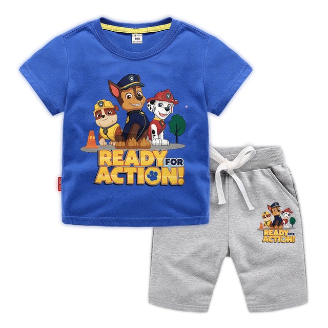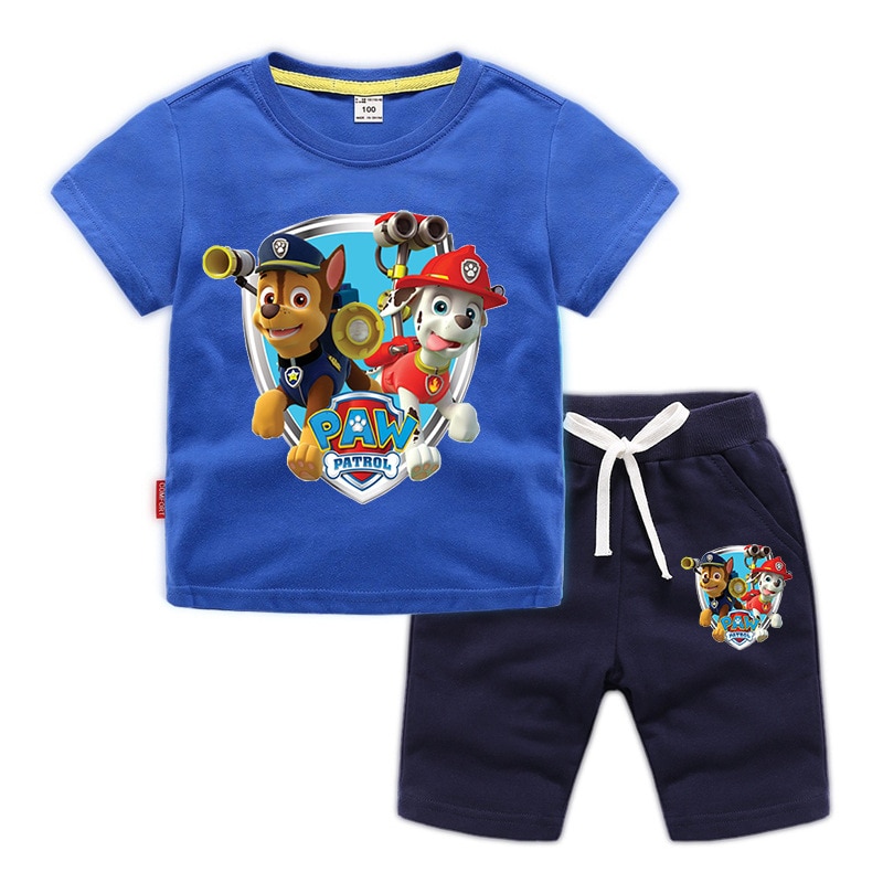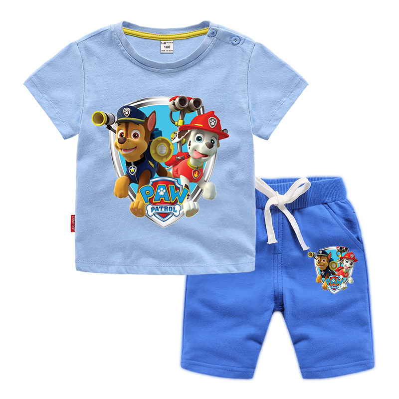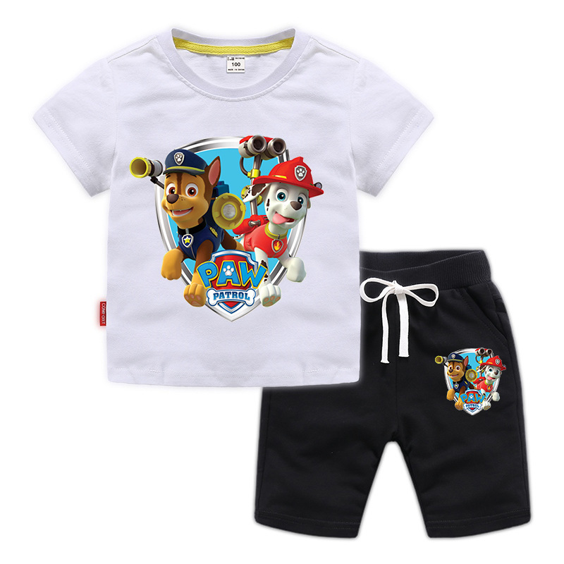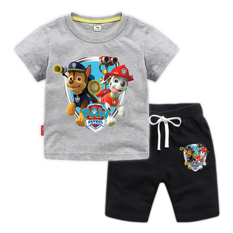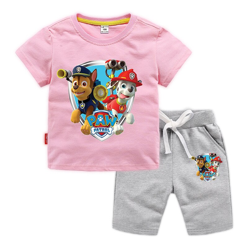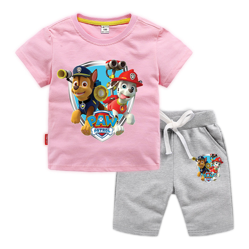 Летние повседневные шорты с мультяшным принтом из м/ф «Щенячий патруль» для девочек, хлопковый комплект из футболки и брюк для мальчиков