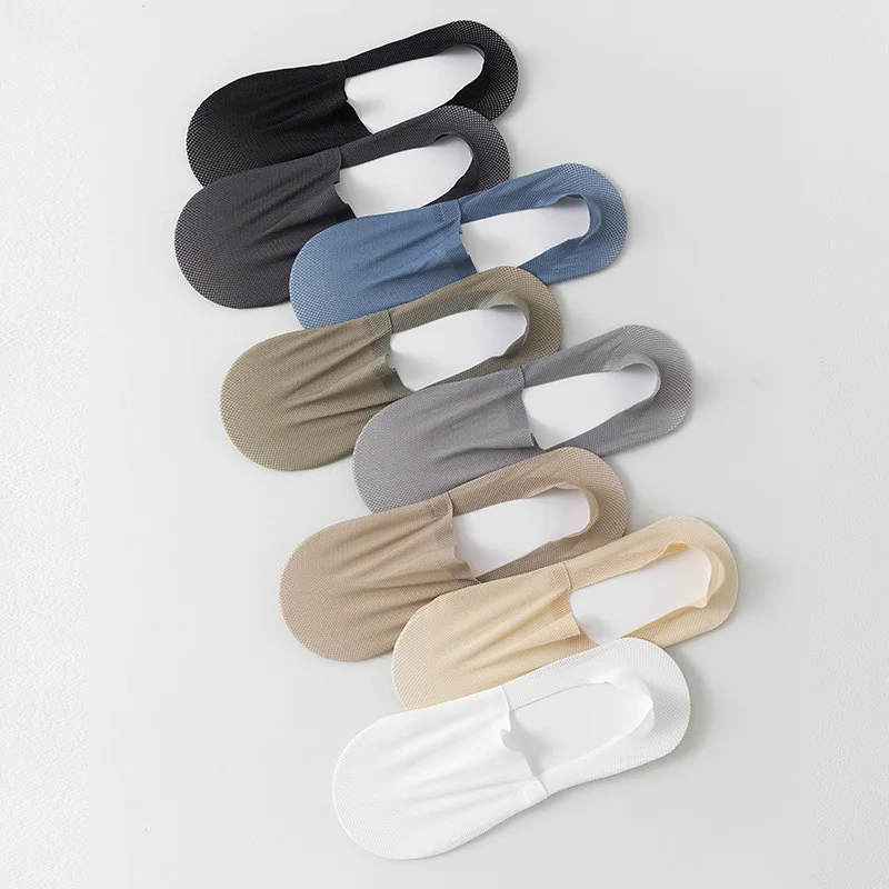 Летние шелковые носки-лодочки для мужчин и женщин, силиконовые Нескользящие носки-тапочки, дышащие невидимые сетчатые короткие носки