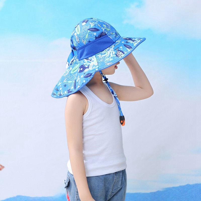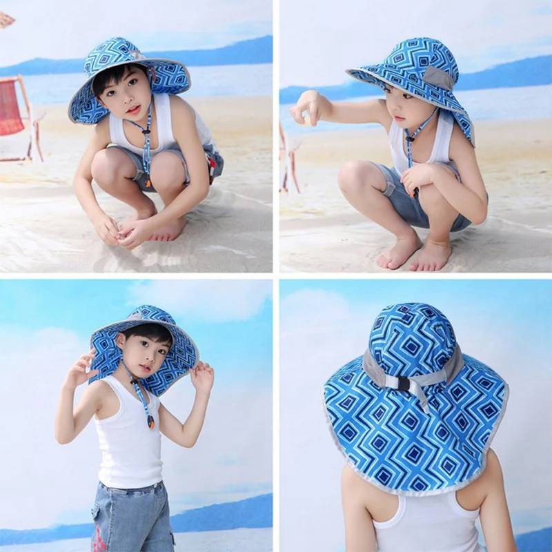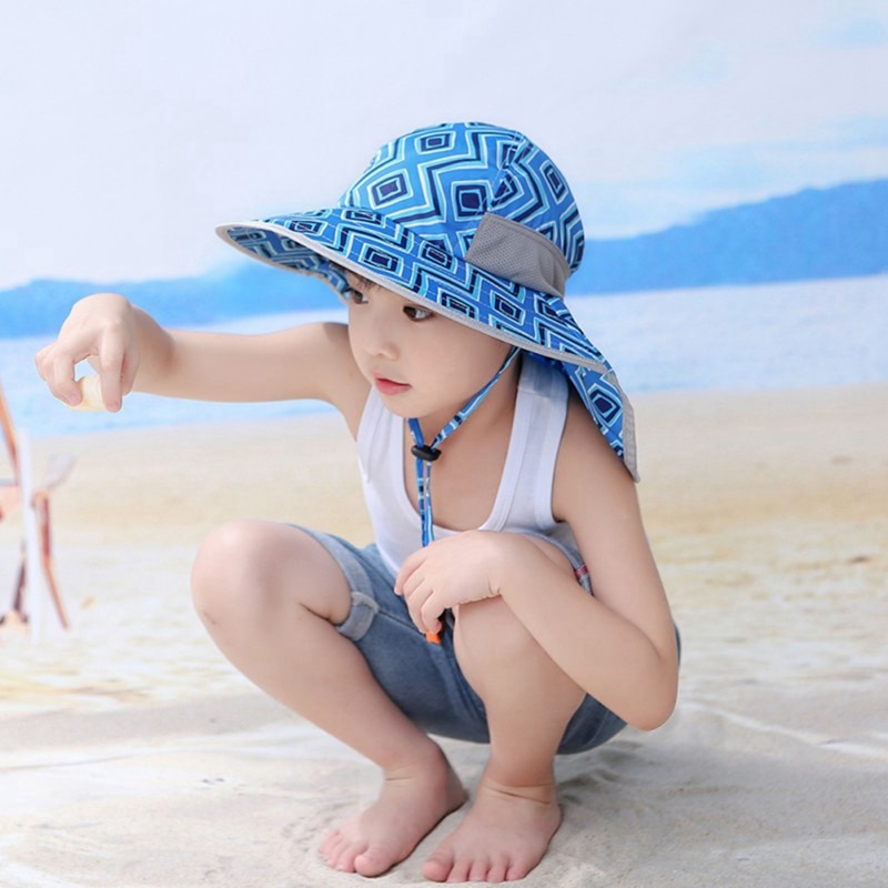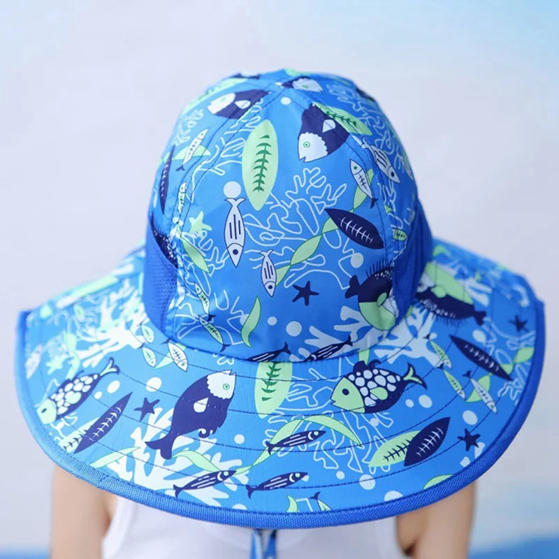 Летние защитные детские шапки для шеи, детская шляпа от солнца с принтом, дышащая Панама с защитой от УФ-лучей, шляпа для мальчиков и девочек