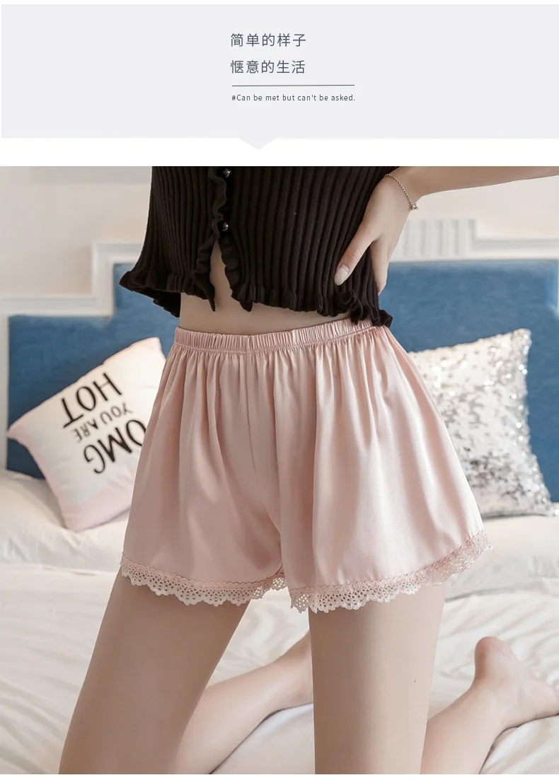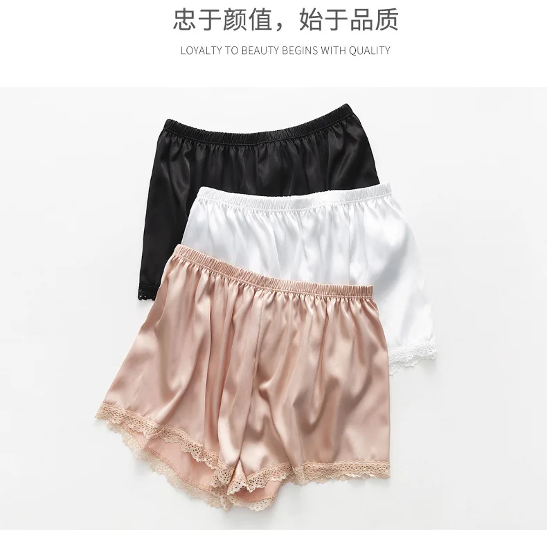 Летние женские атласные шелковые шорты, кружевные лоскутные Женские шорты, боксеры, мягкие крутые пижамы, нижнее Белье для сна для девочек