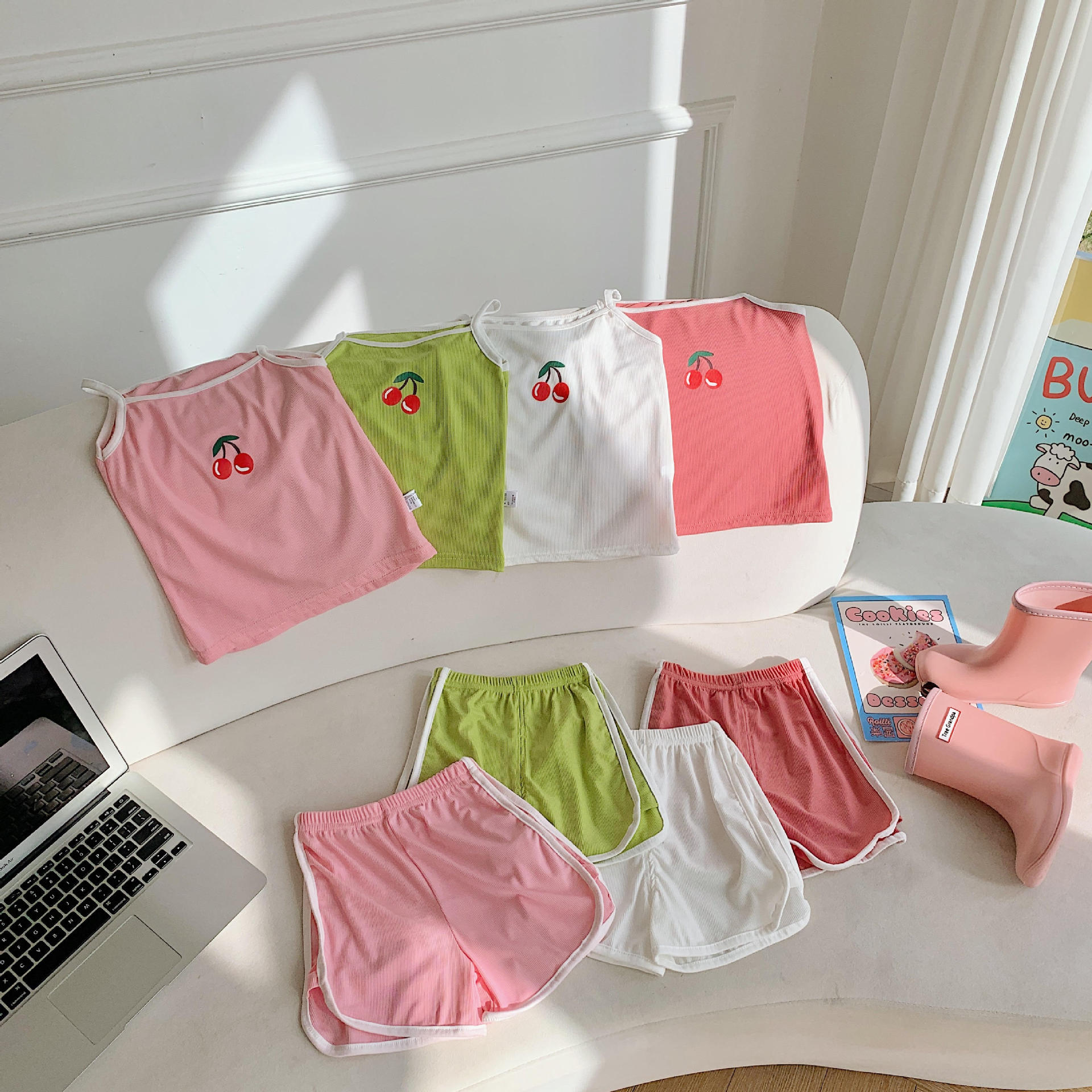 Летний детский комплект без рукавов, кофта + шорты, костюм из 2 предметов, повседневный модный костюм из вискозы для младенцев, малышей, детская одежда