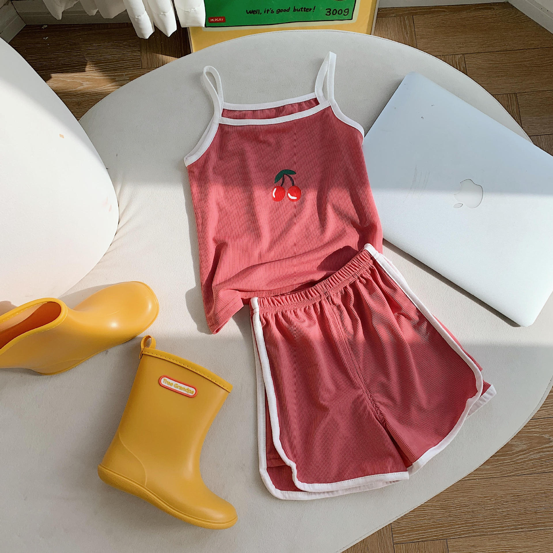 Летний Детский комплект без рукавов камзол + шорты, костюм из 2 предметов из ледяного шелка, Повседневная модная одежда для малышей, детская одежда