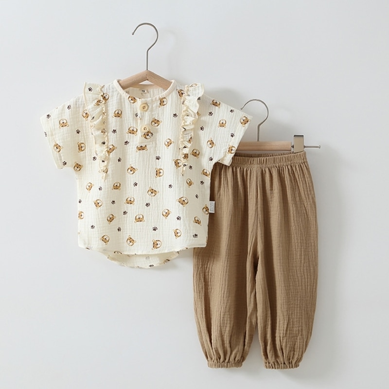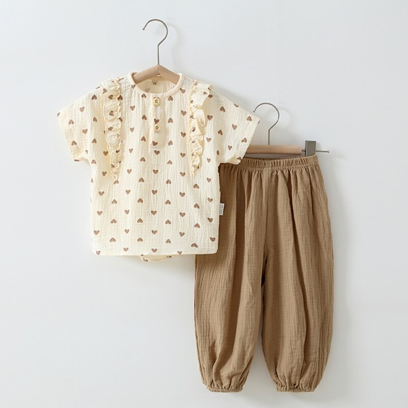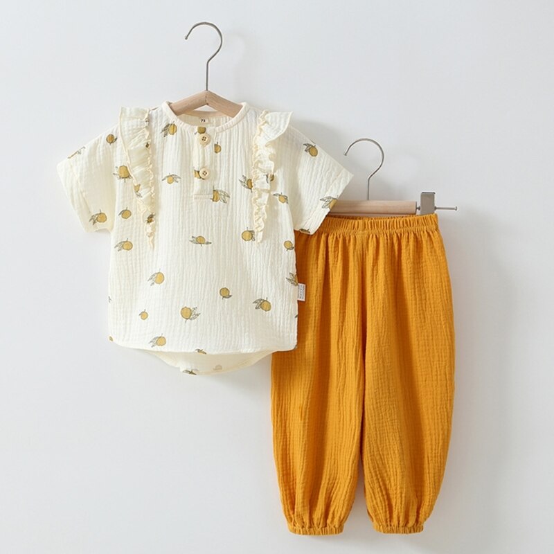 Дружественный для кожи Детский костюм: в этом детском летнем наряде используется низкоаллергенный марлевый хлопковый материал, Прекрасный Принт, приятный для кожи и дышащий, который удобно носить, подходит для весенней и летней одежды в помещении или на открытом воздухе.